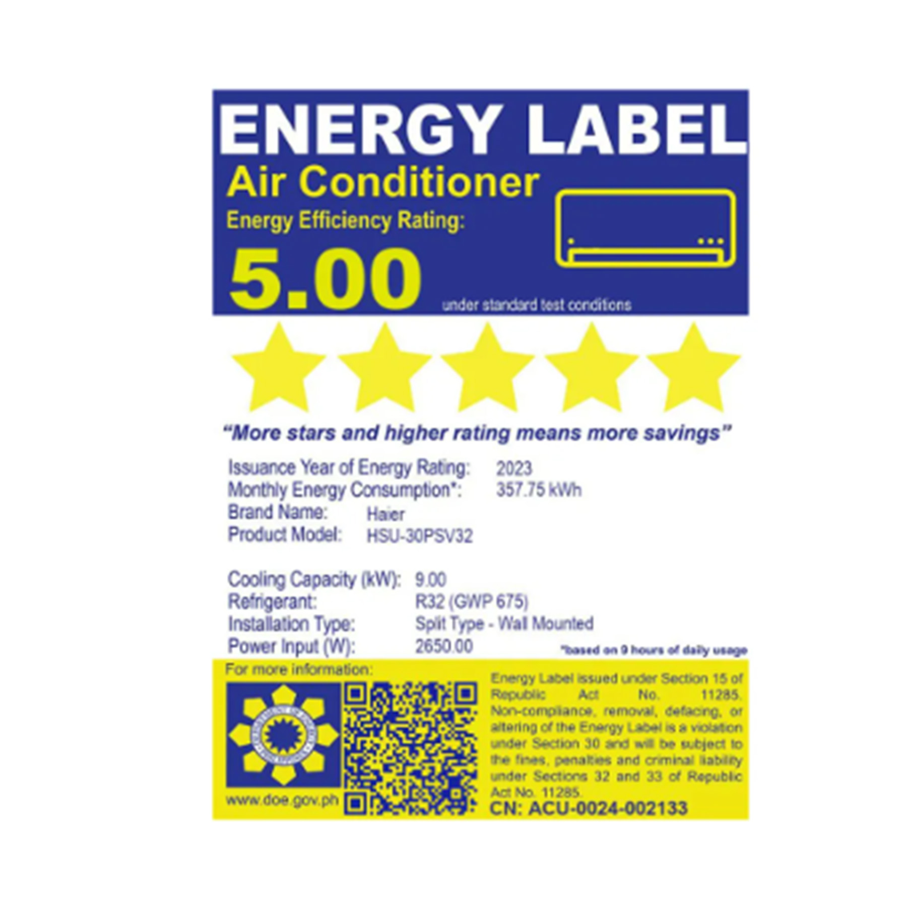 Aircon Type: Split Split Type: Hi-Wall Cooling Capacity (HP): 3 HP Length (cm): Indoor: 21.7 | Outdoor: 28 Width (cm): Indoor: 87.5 | Outdoor: 80 Height (cm): Indoor: 30.7 | Outdoor: 55.3 Gross Weight (kg): Indoor: 11 | Outdoor: 31.5 Net Weight (kg): Indoor: 12.5 | Outdoor: 29