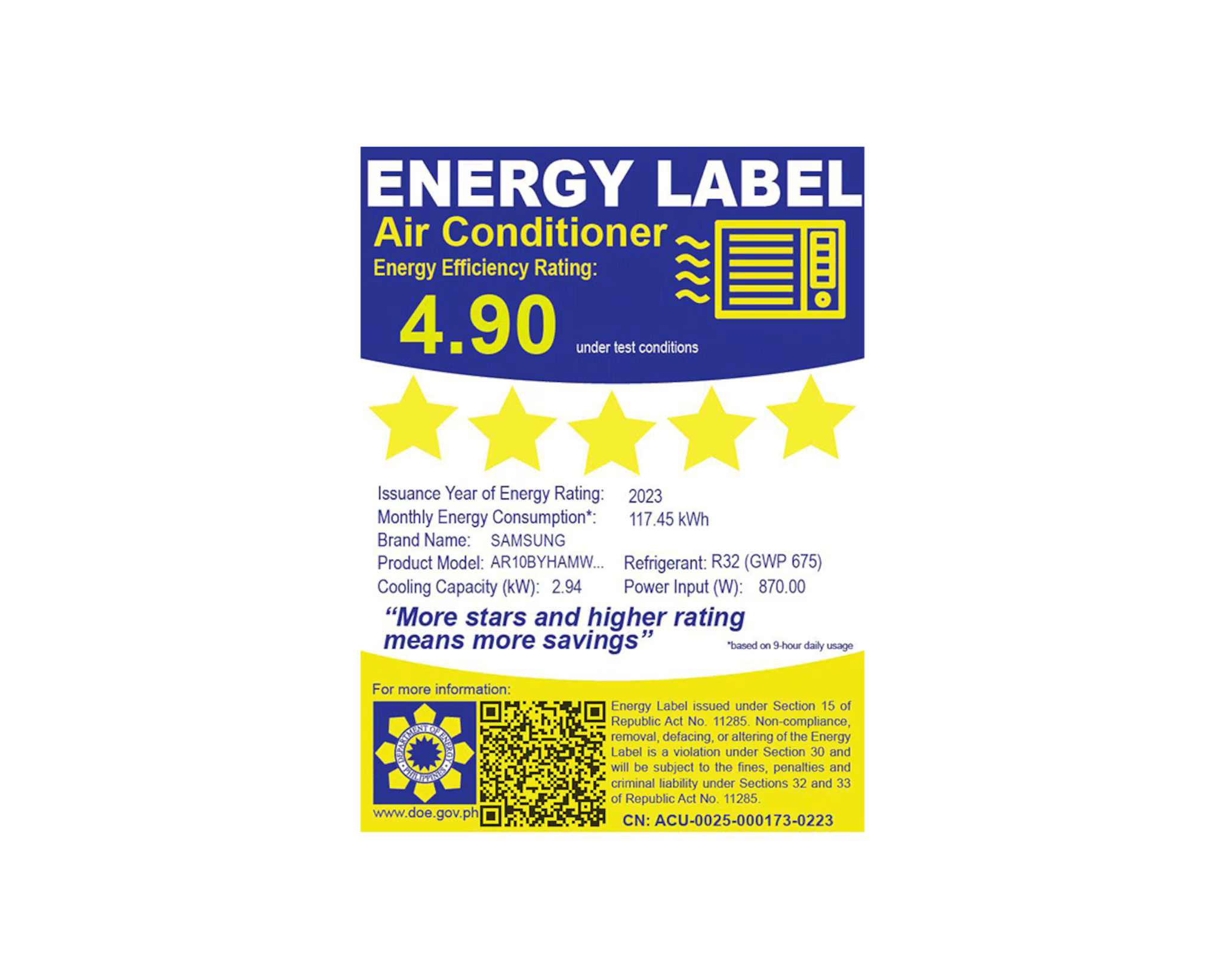 - High Energy Efficiency: The Digital Inverter Boost technology maintains the desired temperature with less fluctuation, reducing energy usage by up to 73% in general operation and up to 77% when in WindFree™ mode compared to Fast Cooling.