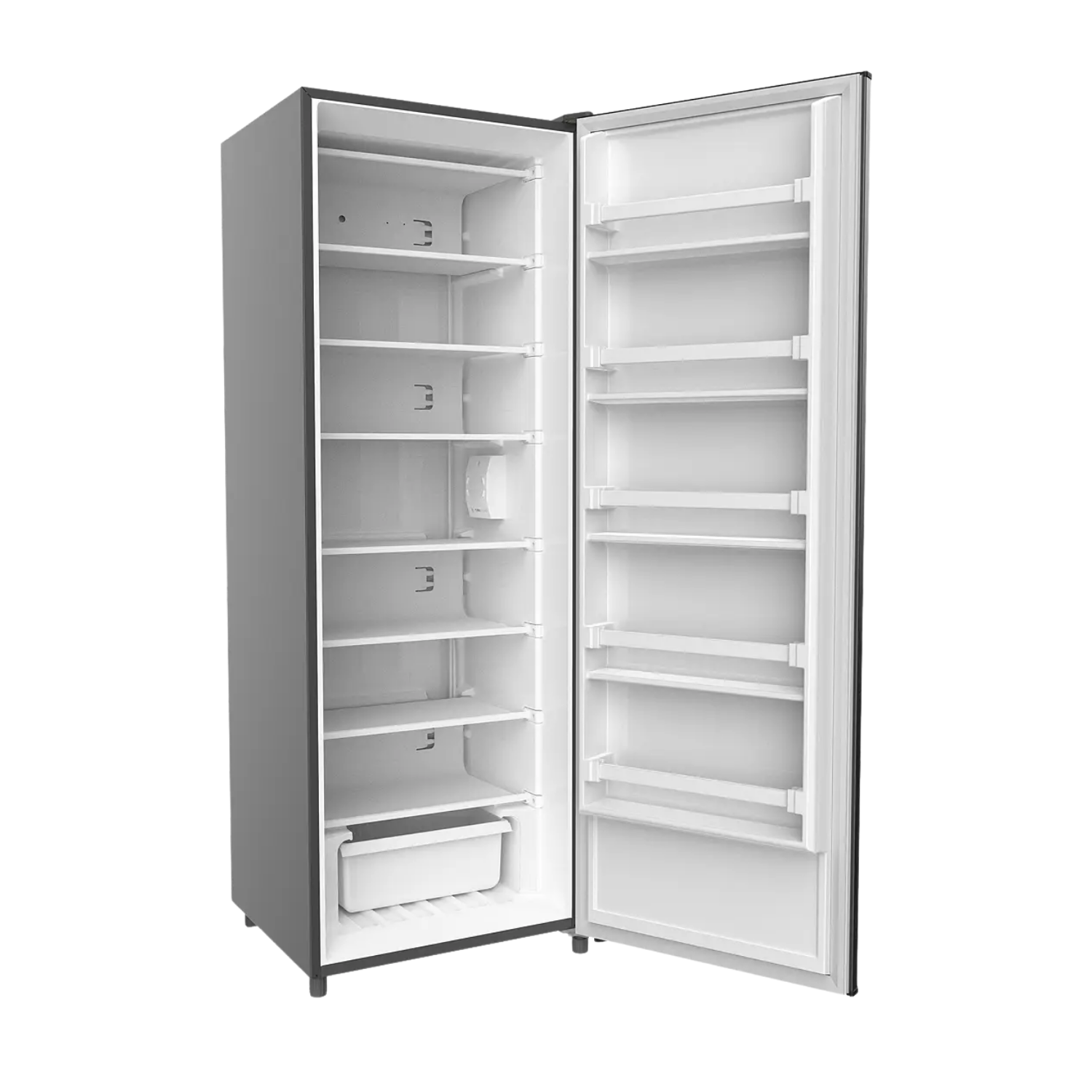 10.8 cu.ft Upright Freezer Inverter Compressor Manual Defrost Quick Freezing Durable And Reliable For Business Use Superior Energy Savings High Energy Efficiency R600A Roll Bond Evaporator Shelves 7 Shelves Plus Bottom Pan Door Storage Shelf Adjustable Leg 71 Frozen Icebags In 24 Hours Type A -2 Flat Prong Plug Temperature Range: -11.5° To -24°C 115 Watts