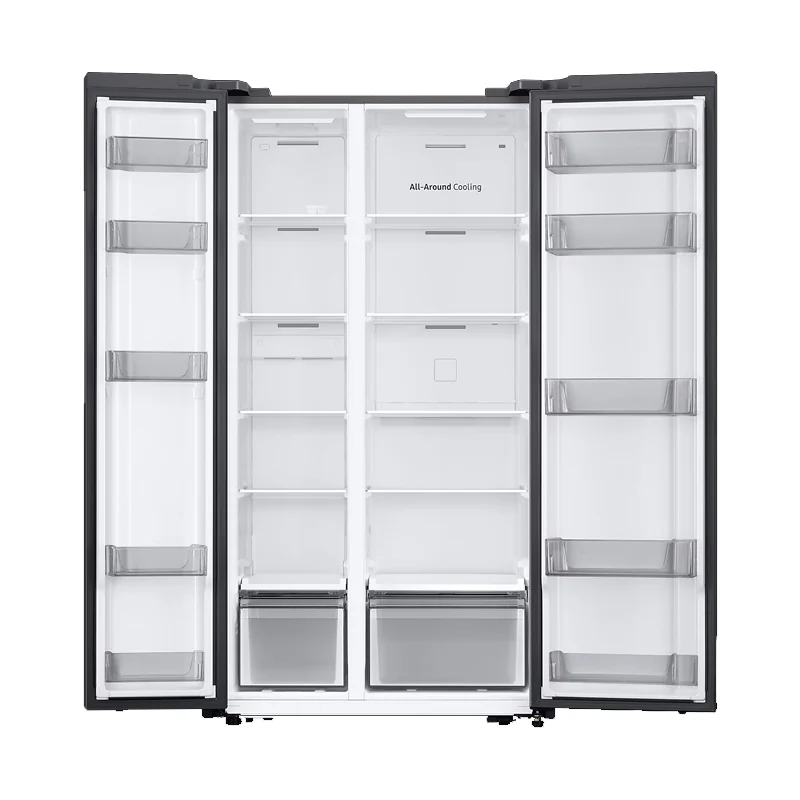 The side-by-side design with No Frost and All-Around Cooling ensures your food stays fresh longer. No more manual defrosting or uneven cooling—every corner of your fridge maintains optimal temperature, keeping flavors intact and reducing food waste.