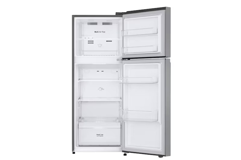 8.3 cu.ft Two Door Top Mount No Frost Smart Inverter Compressor Select Back To Top Linear Cooling Multi Airflow Flat Door Panel Tempered Glass Shelves Chrome Less Handle Dark Graphite Type A -2 Flat Prong Plug