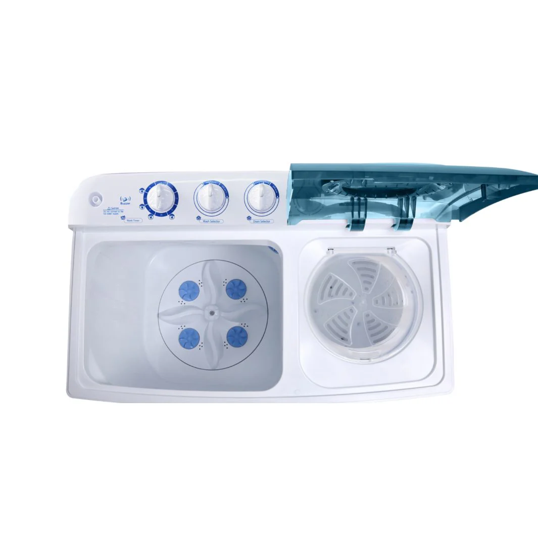 Type: Twin Tub Washing Machine Wash Capacity: 7 kg Spin Capacity: 4.6 kg Body Material: Rust-proof body Control Panel Material: ABS Plastic Dimensions (WxDxH): 761 x 448 x 885 mm Net/Gross Weight: 19 / 23 kg
