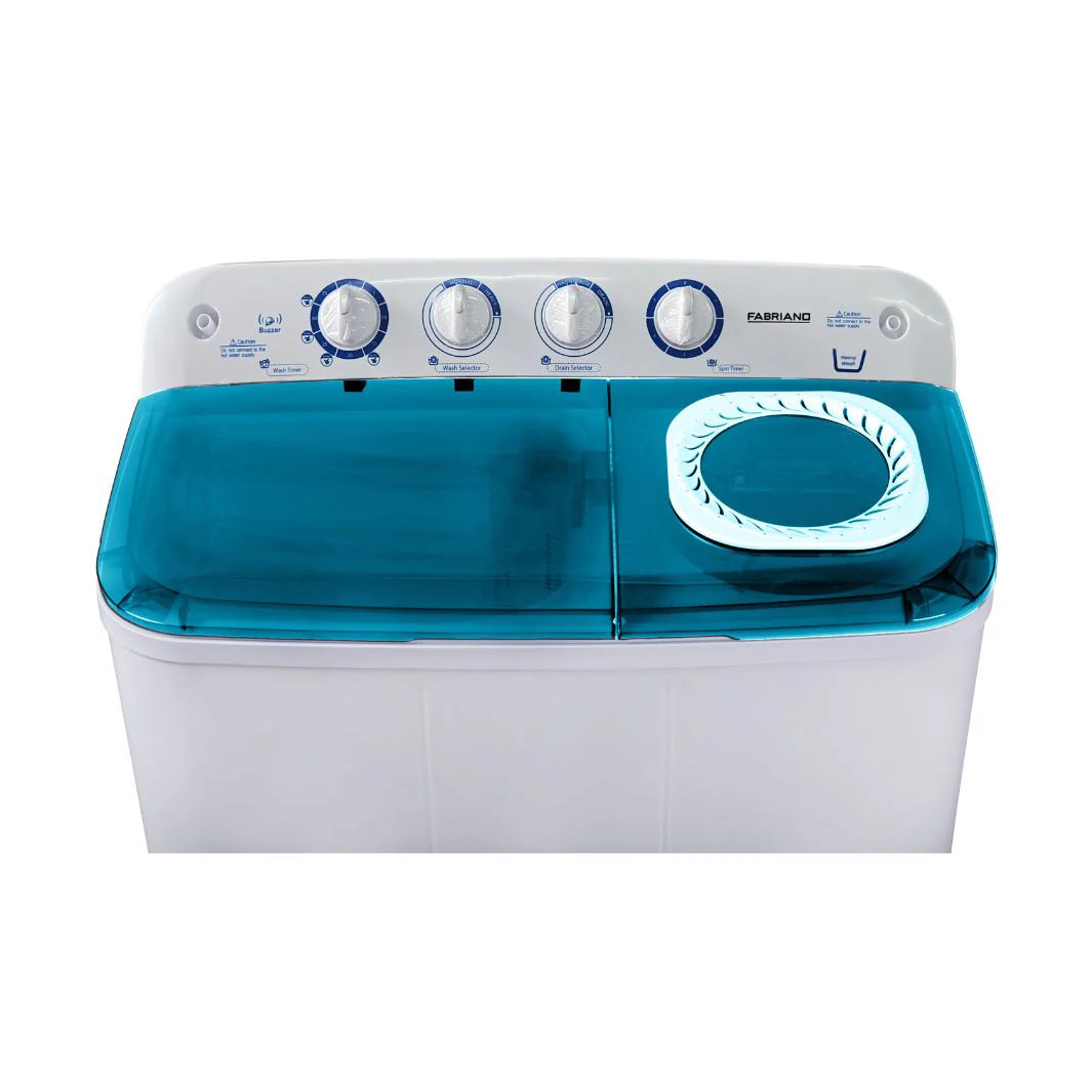 The Fabriano FTTM07BWH is a twin‑tub / semi‑automatic washing machine designed for straightforward laundry at home. It doesn’t have fully automatic cycles — instead, you manually control the wash and spin functions using knobs and timers