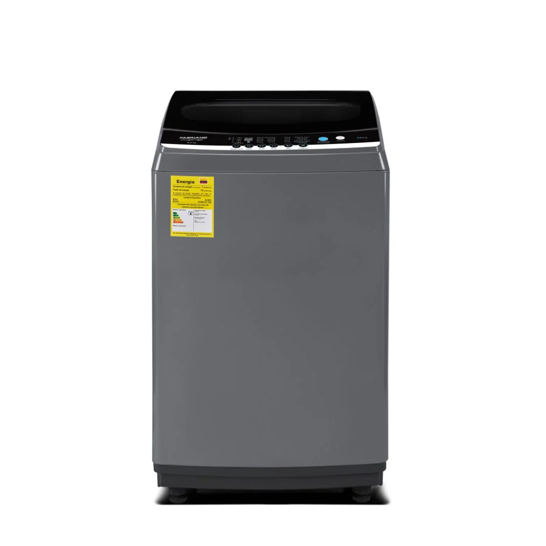 The Fabriano FFAM105GR-i is a 10.5kg Direct Drive INVERTER Top Load fully automatic washing machine. Key specifications include an LED display, 8 washing programs, a stainless steel diamond drum, and various smart features like fuzzy logic and child lock.
