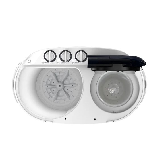 9.5kg Twin Tub Jumbo Hydro Wash Hydrodynamic Wave Pulsator Bigger and Wider Tub Waterproof Control Panel Non-Breakable Lid Material Durable Plastic Material Ratproof Design Type A -2 Flat Prong Plug Wash: 340W Spin: 185W Can Handle Comforter? Yes, Light Only
