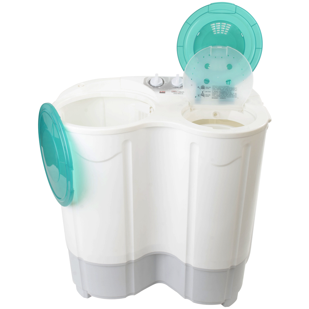 Type: Semi-automatic Twin Tub (Wash and Spin). Product Dimensions (L x W x H): Approximately 700 x 400 x 850 mm. Net Weight: 15.8 kg. Cabinet Material: Durable and rust-proof high-grade plastic body. Voltage/Frequency: 220–230V a.c. / 60 Hz. Washing Power: Approximately 300 W.