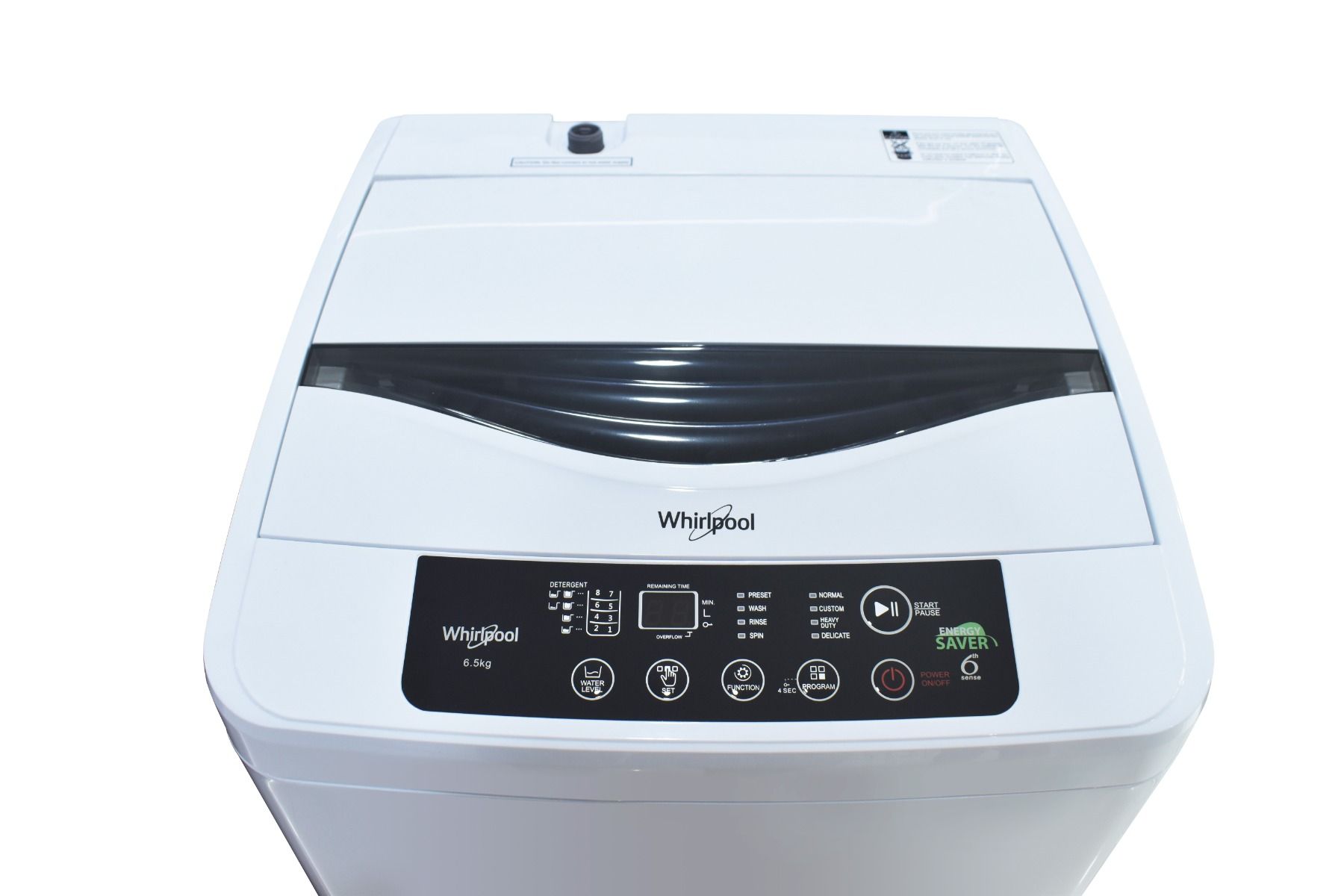The Whirlpool LFP650WH is a 6.5kg, fully automatic, top-load washing machine featuring 6th Sense Technology, a digital panel, stainless steel tub, 4 wash cycles (including Energy Saver), and smart features like Delay Wash, Soak, and Child Lock, operating at 330W with an 850 RPM spin speed. It's known for its efficiency, robust metal body, and user-friendly design with specific water pressure needs.