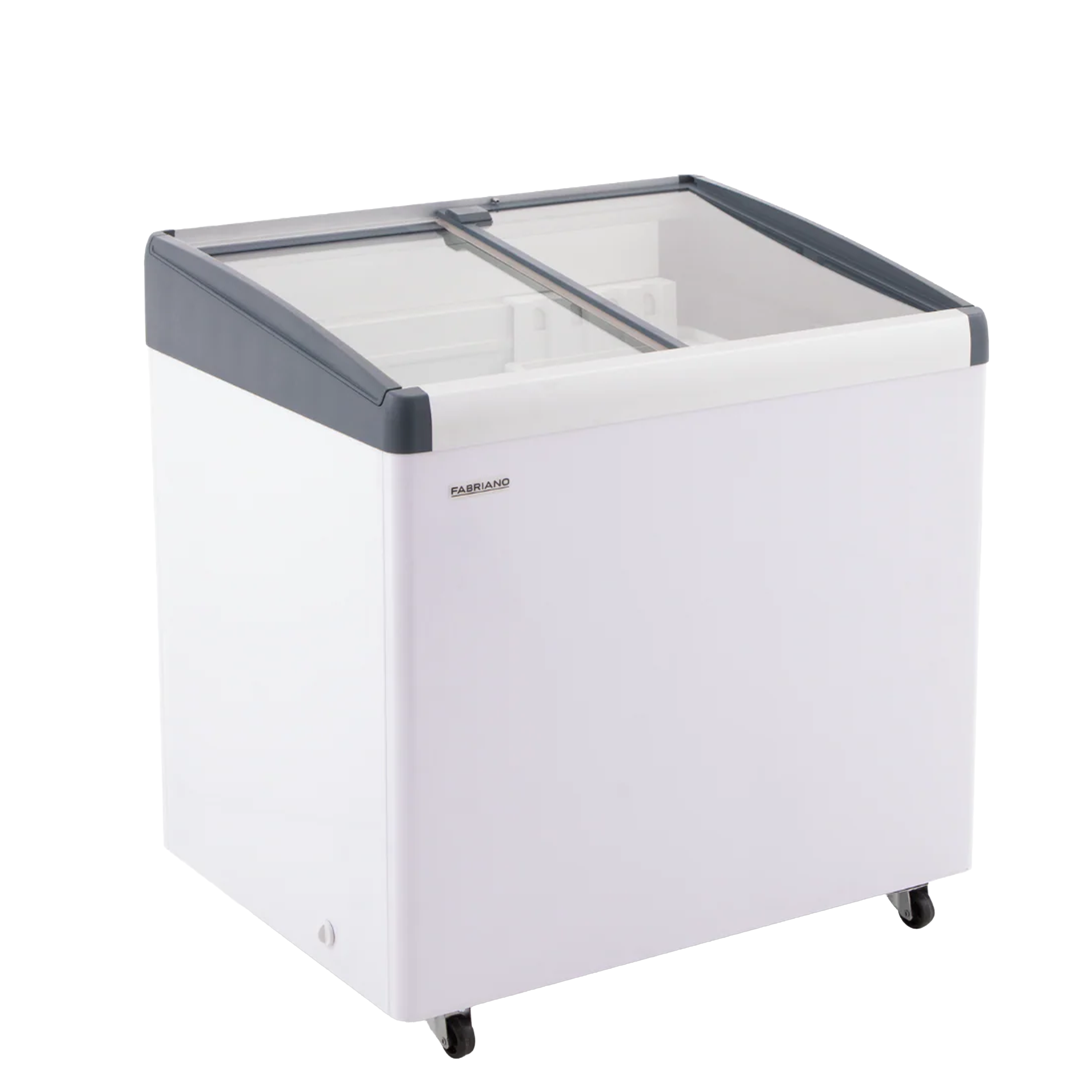 Fabriano FGTC07SG is a 7 cubic foot, dual-function showcase chest freezer designed for commercial and home use. Its key features include a glass top for display, a lock and key, and manual temperature controls.