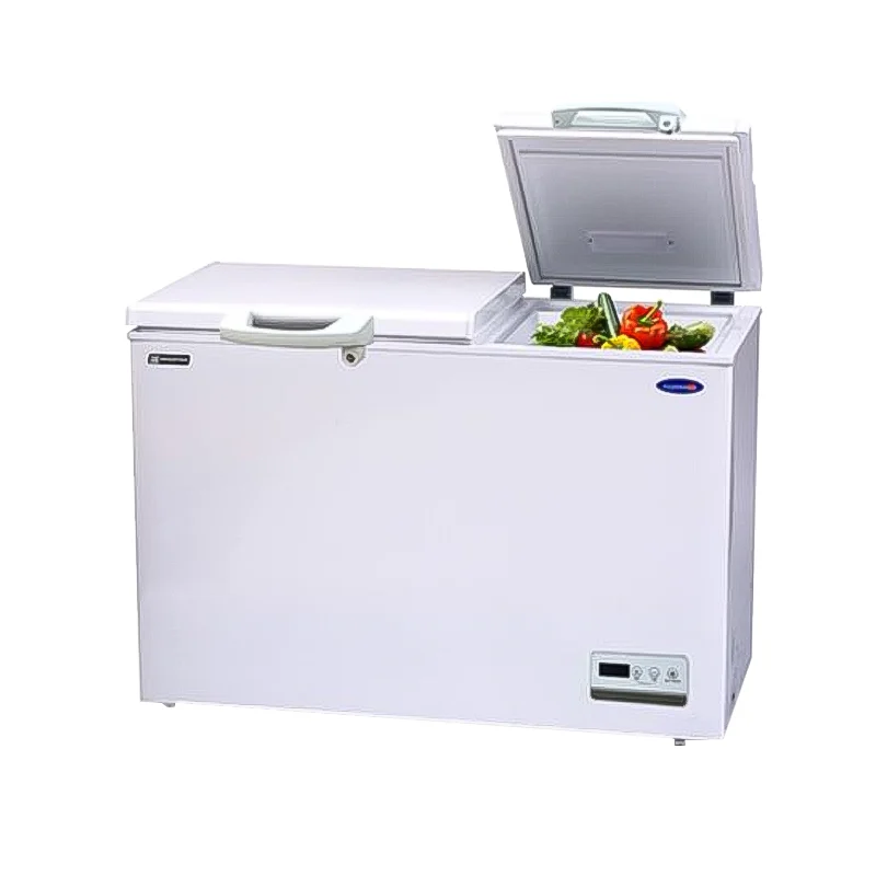 HD Inverter Dual Compartment Freezer and Chiller 7 cu. ft. Freezer capacity (left side) 3 cu. ft. Chiller Capacity (right side) Fast Freezing Mode Galvanized interior LED Lights Double Recessed Handle-Both Side and Front Roller Feet Front Temperature Control Clean Back Design