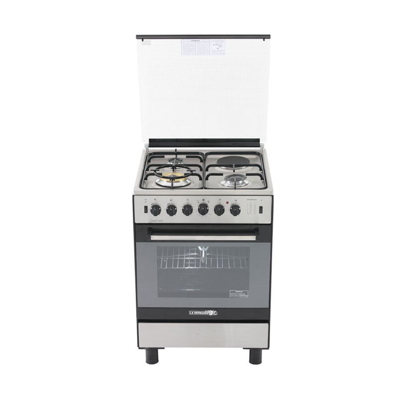 Oven: Gas oven with Gas Grill, 98L capacity, Thermostat, Oven Light, Double Glass Door, Rotisserie