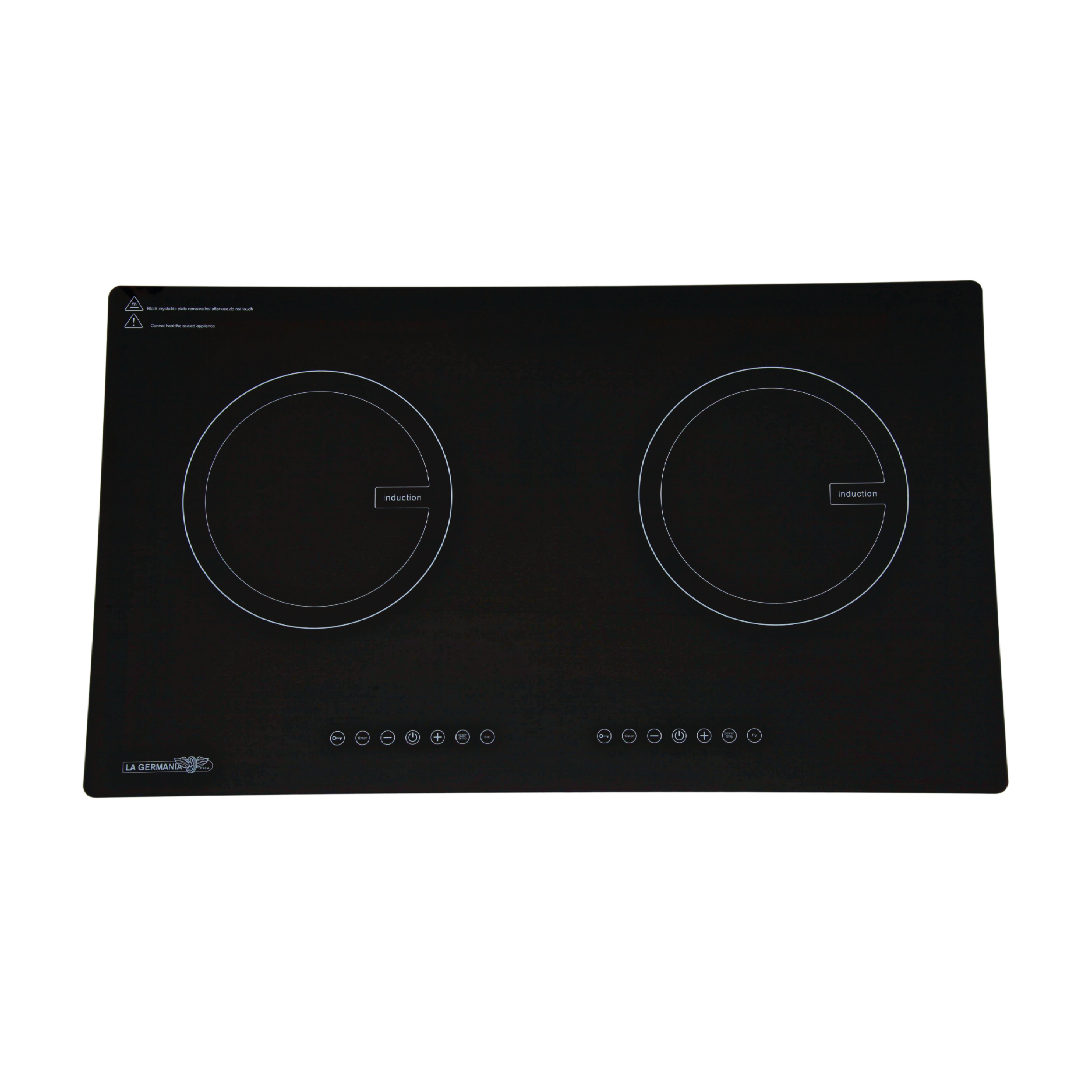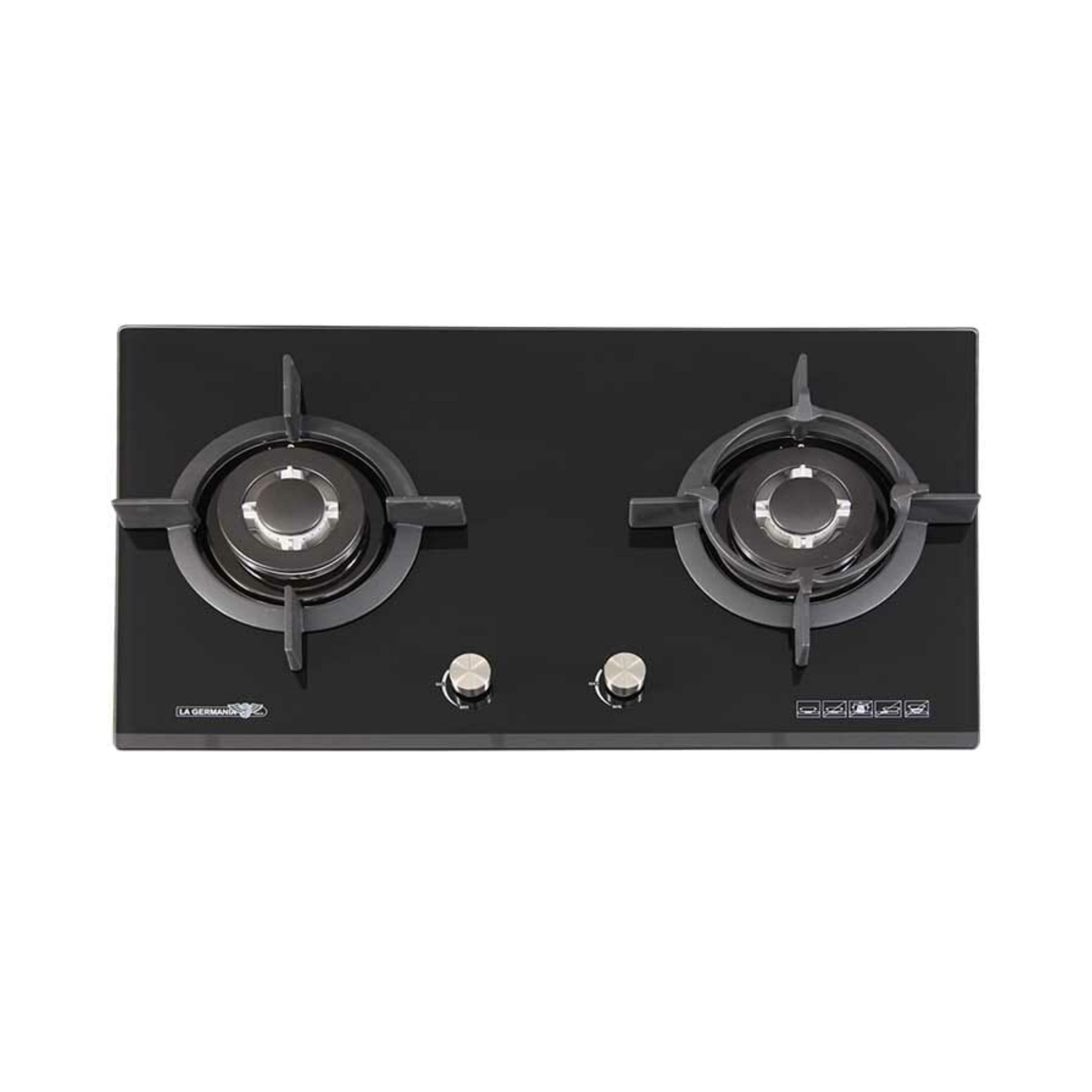 Design: Matte Black finish, Glass Lid, Enamel Pan Supports, Drop-down door