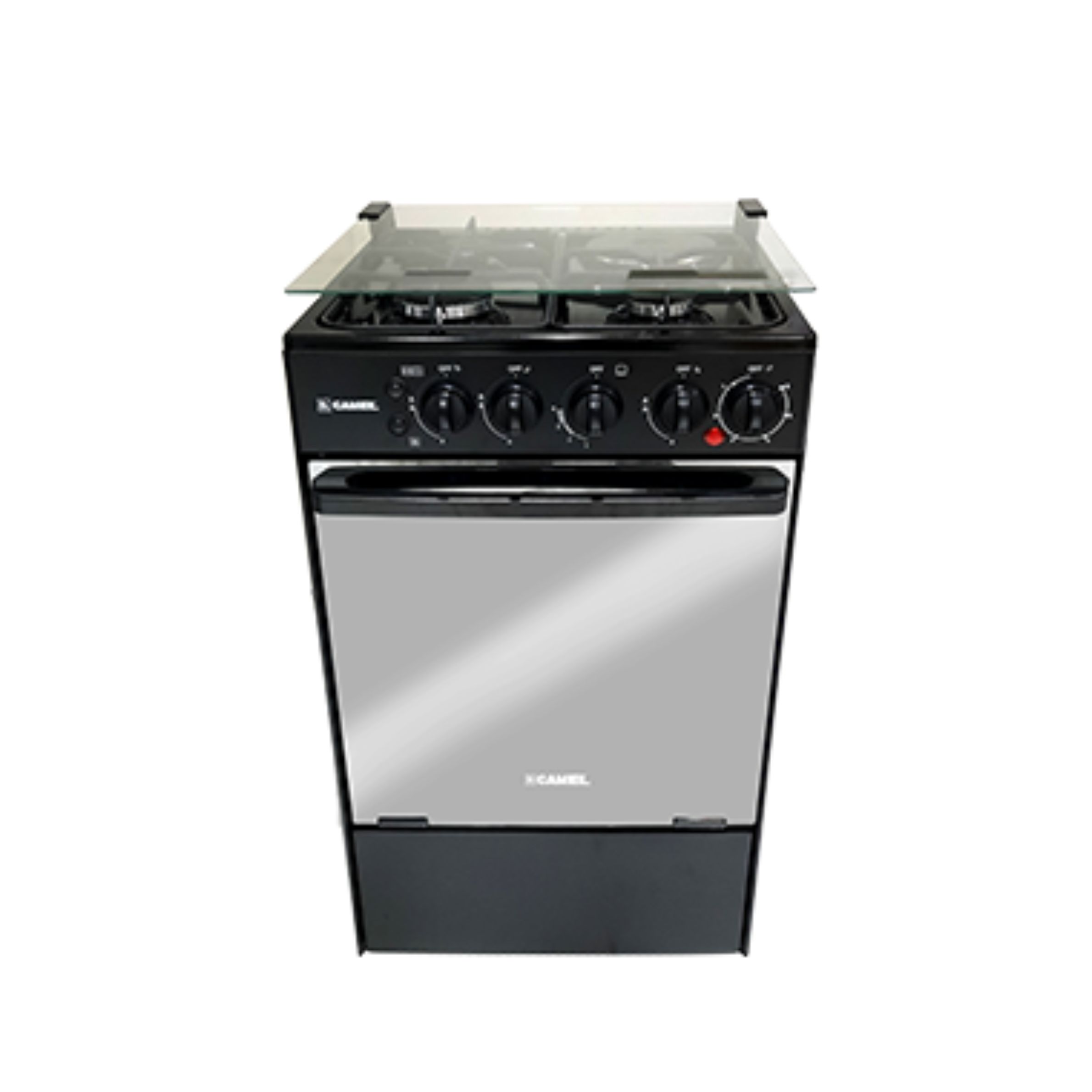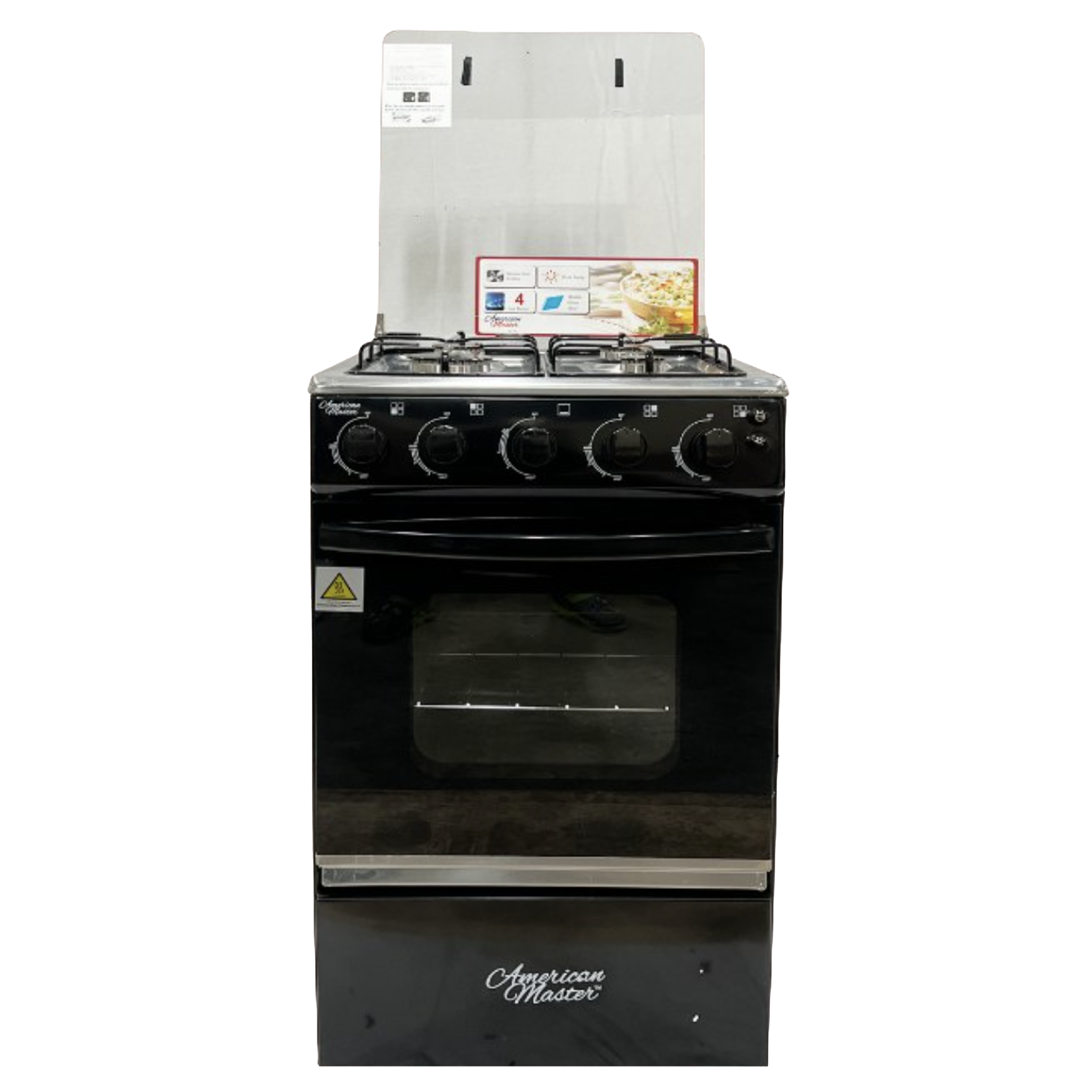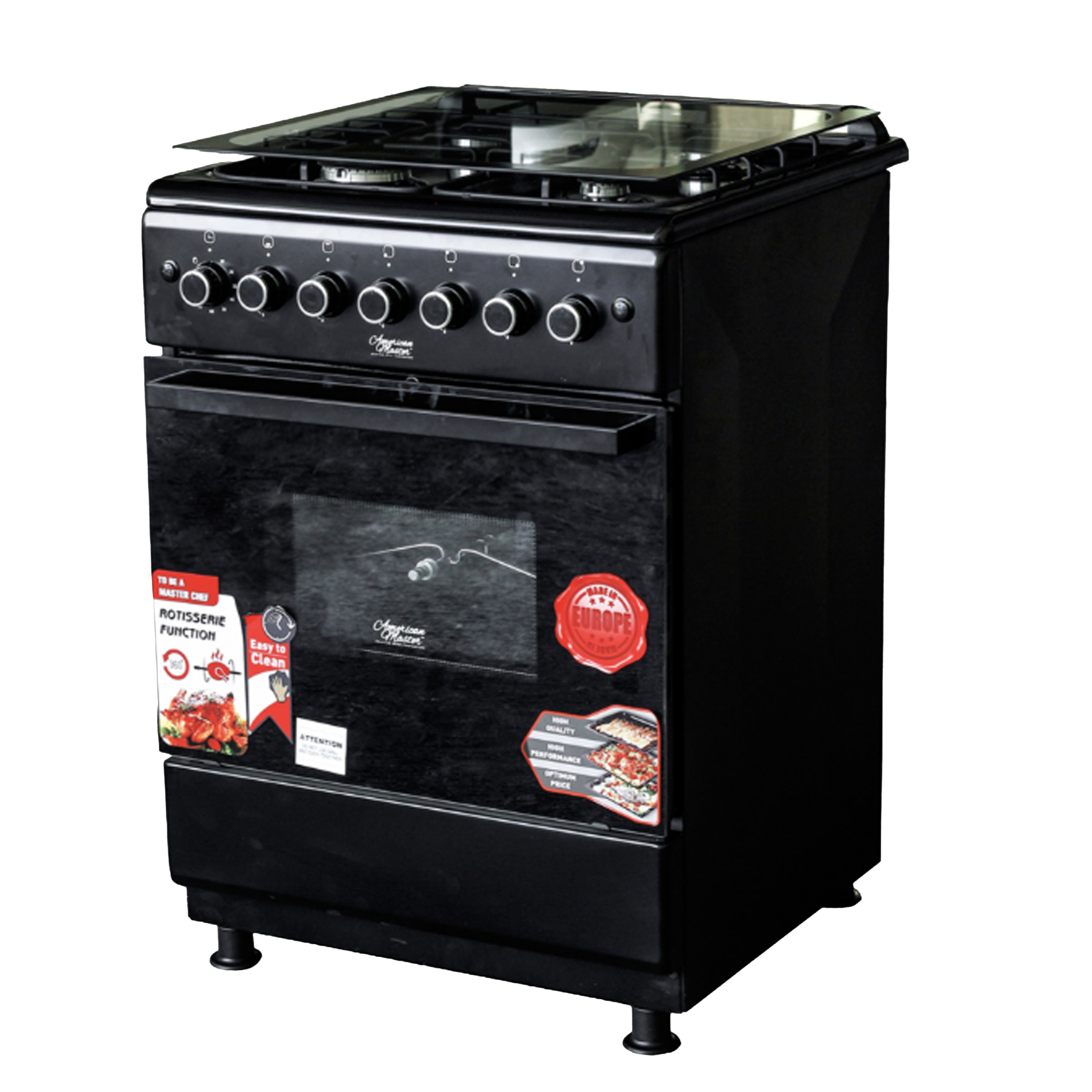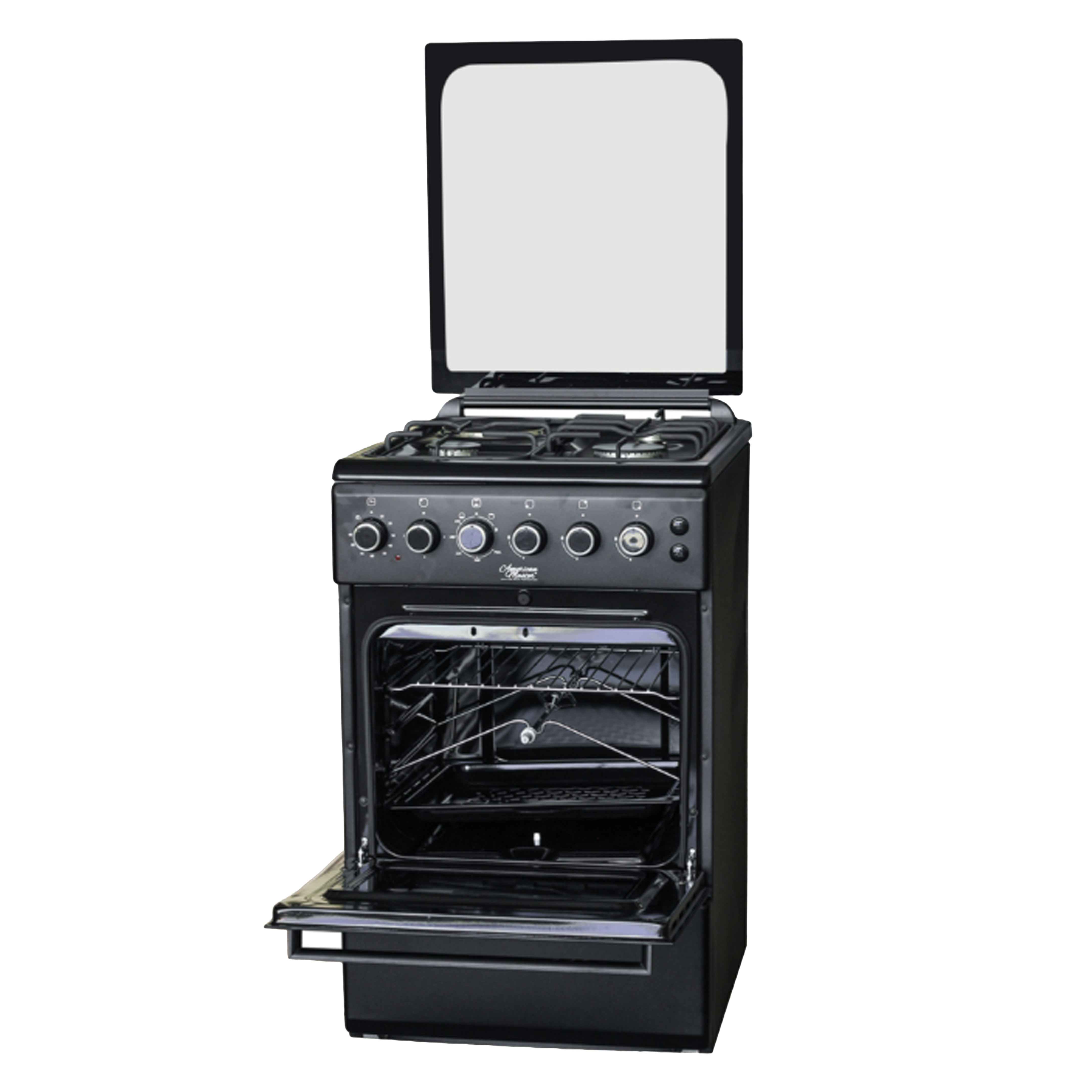 Cooktop: 4 gas burners with electric ignition Oven Capacity: Spacious 55 L oven for baking and roasting Design: Sleek matte black finish User Friendly: Oven safety device and included accessories