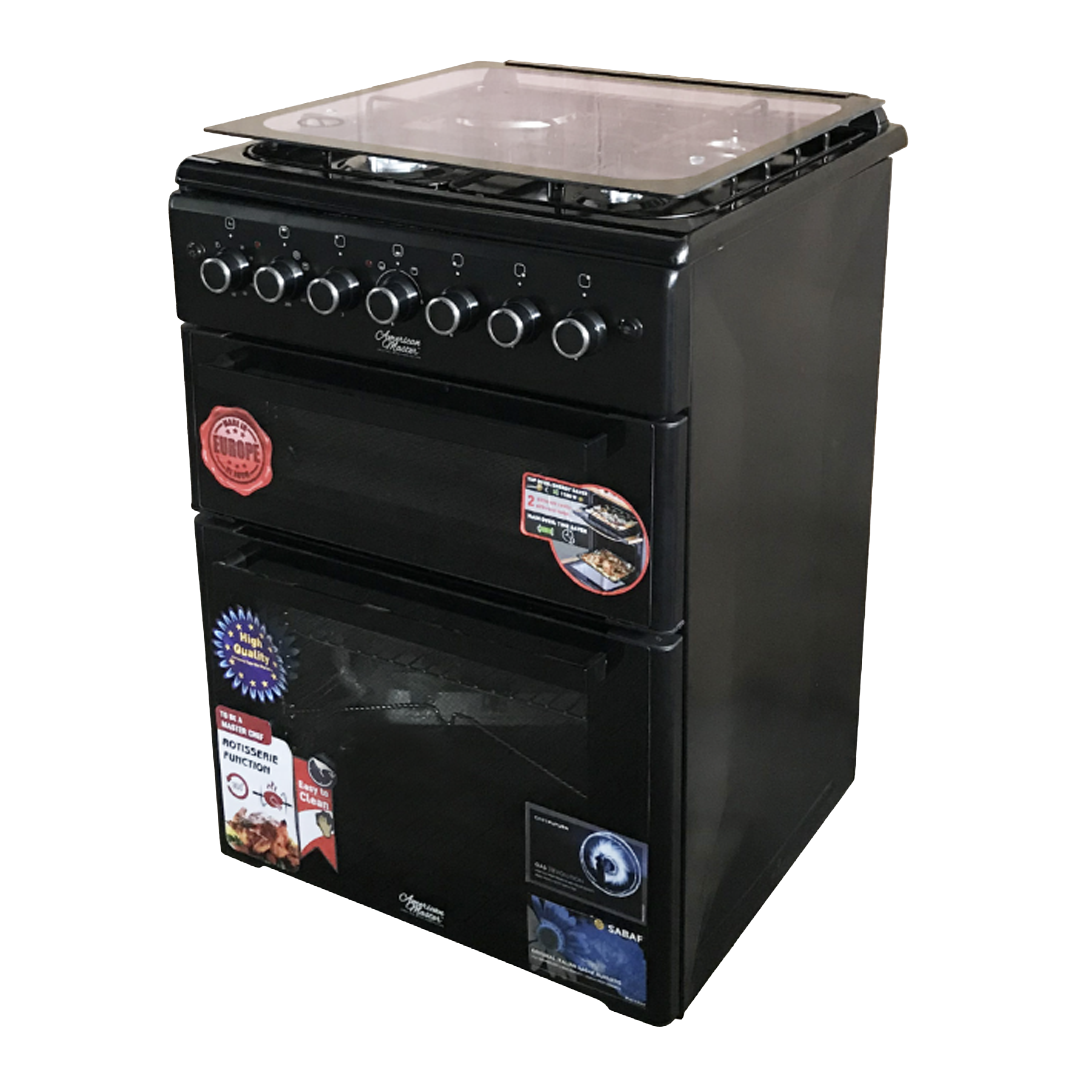 full safety cooktop and oven Oven lamp Pulse Ignition 2 Layer mirror glass oven door Body material: Q235(powder coating) Top material: SUS430 Piso per Fry- only P1 of LPG consumed in 9 minutes of cooking 4456 Amperes 1000 watts 55 Liter Gas Oven With Rotisserie Enamel Matte Pan Support Type B -2 Flat + Ground Plug Electric Ignition Both Burner and Oven Lower Heat Oven
