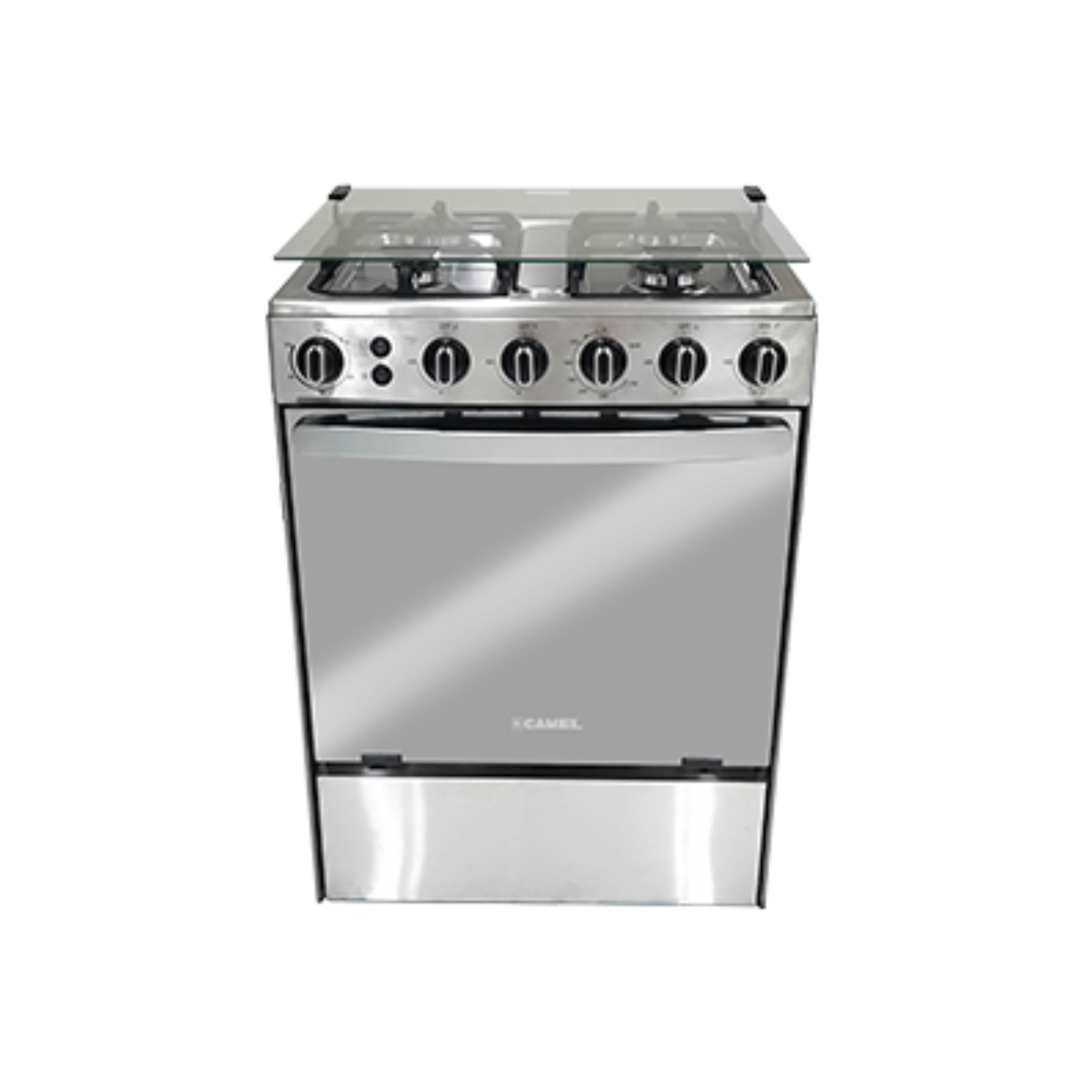 Cooktop: 4 gas burners with fast heating and cast iron support Oven Capacity: Spacious 67 L oven with thermostat Extra Functions: Includes rotisserie and grill features Design & Finish: Durable stainless steel finish suitable for modern kitchens
