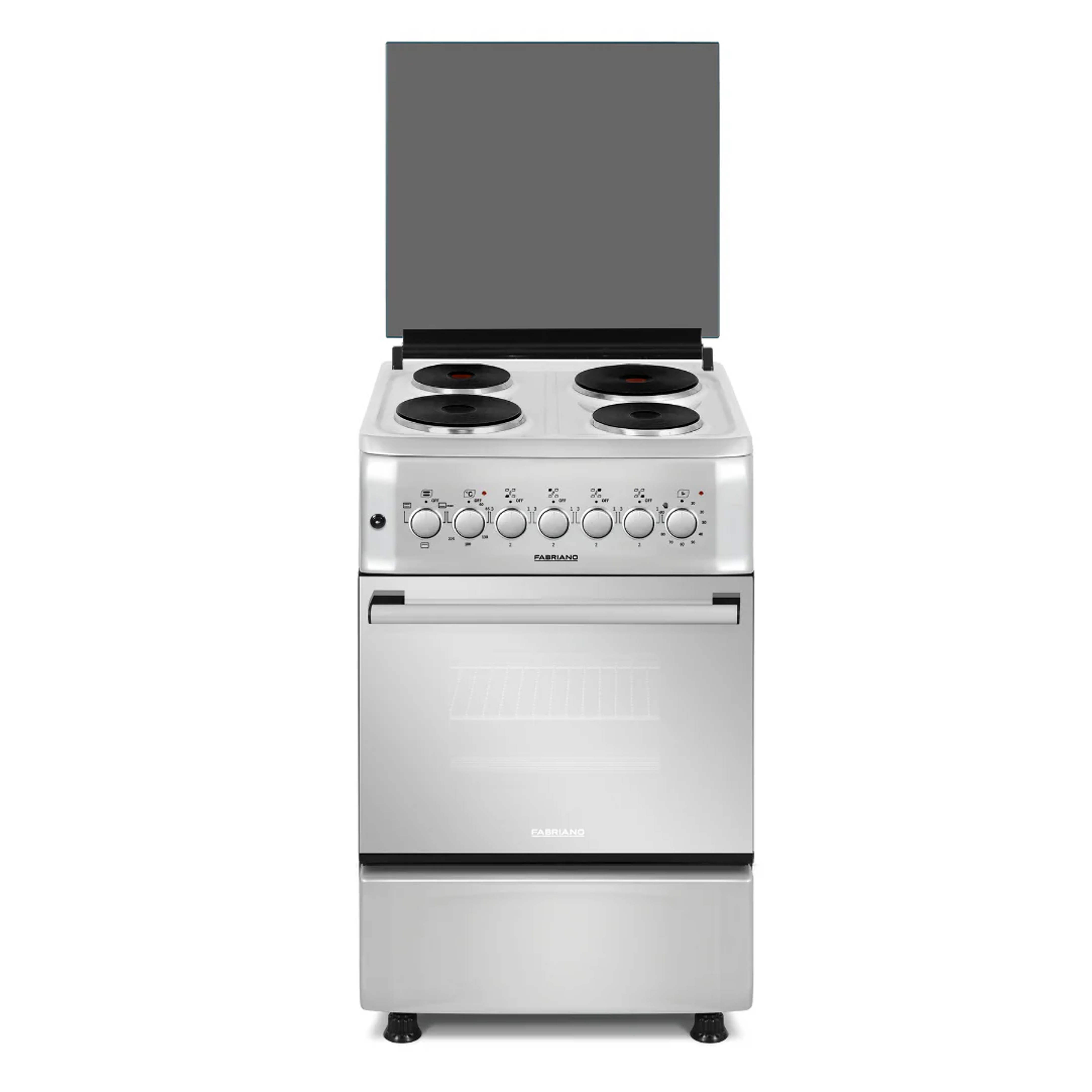 Fully Electric Cooking Range Oven with Multiple Functions Rotisserie Included Oven Capacity: ~56 L Stainless Steel Finish Double Glass Oven Door Oven Light Power Efficient for Household Use – 220–240 V rated, ~7431 W total. Front Knob Controls