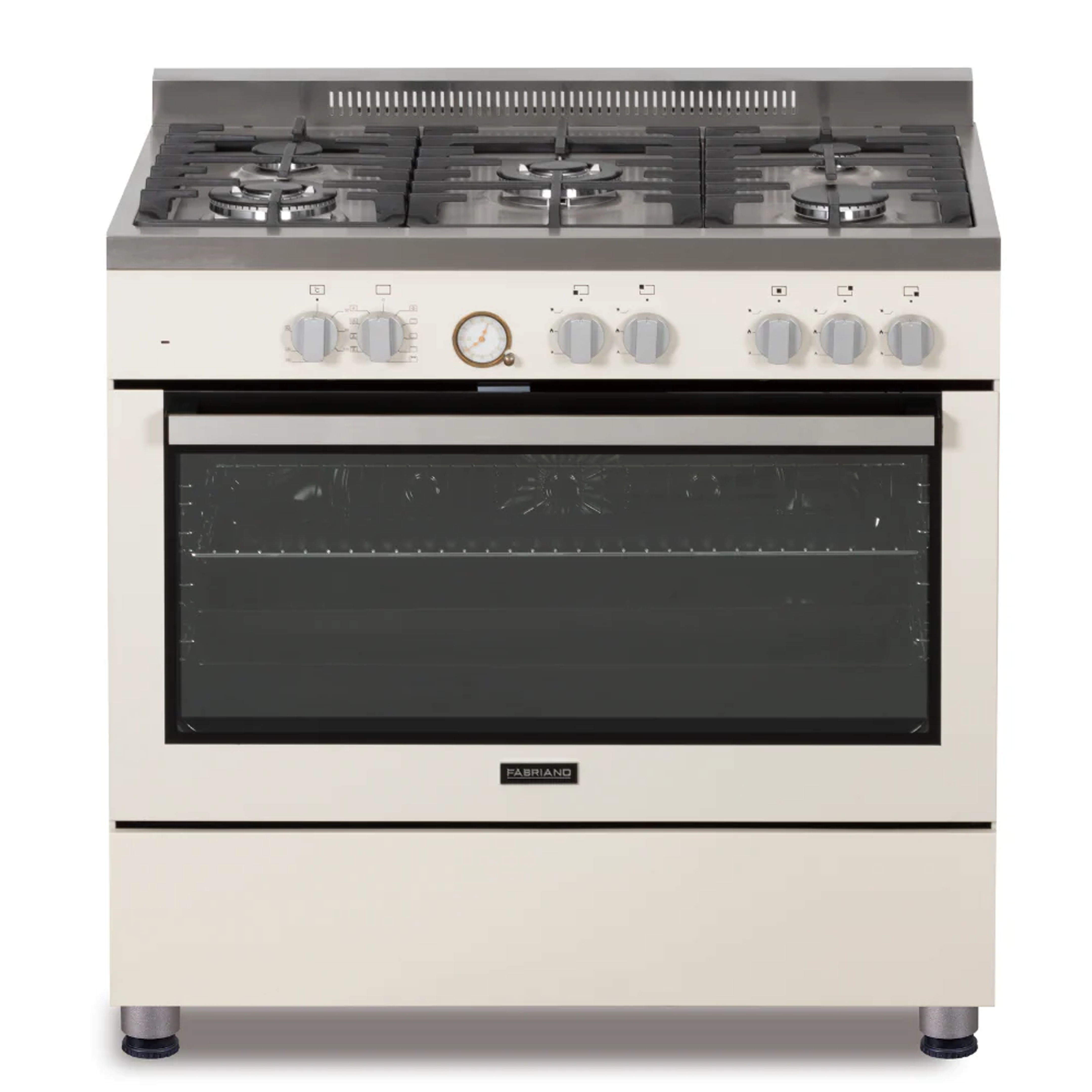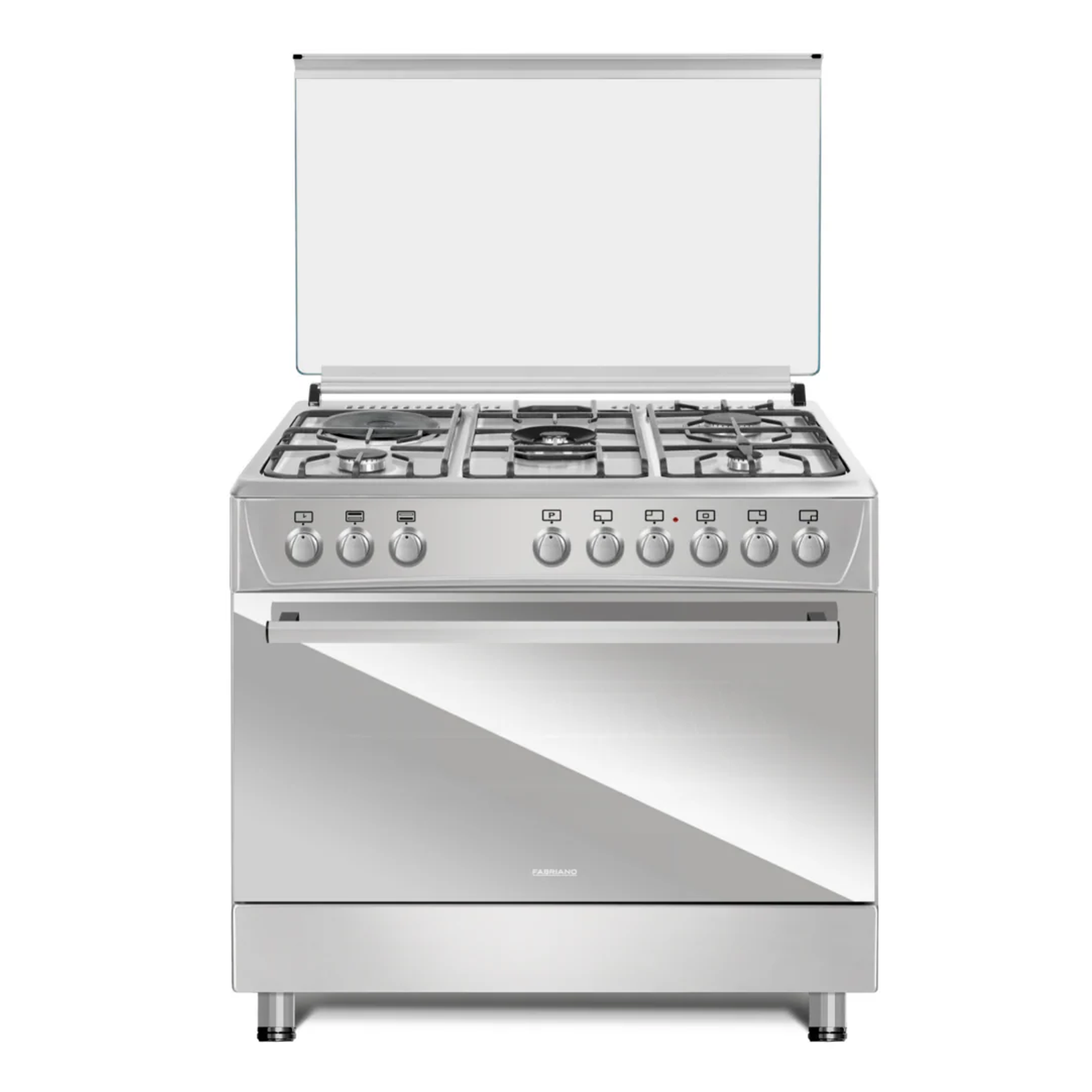 Dual-Fuel Performance: Gas cooktop with an electric oven gives both responsive stovetop control and efficient electric baking. Large Cooking Area: A 90 cm width and 98 L oven capacity make it ideal for family and entertaining meals. Powerful Burners: Two triple-ring burners offer extra heat for high-output cooking needs. Safety Features: Flame failure safety devices on all gas burners for added peace of mind. Convenient Controls: Front knobs plus an analog timer make it intuitive to use. Catalytic Oven: Built-in cleaning assistance reduces maintenance effort.