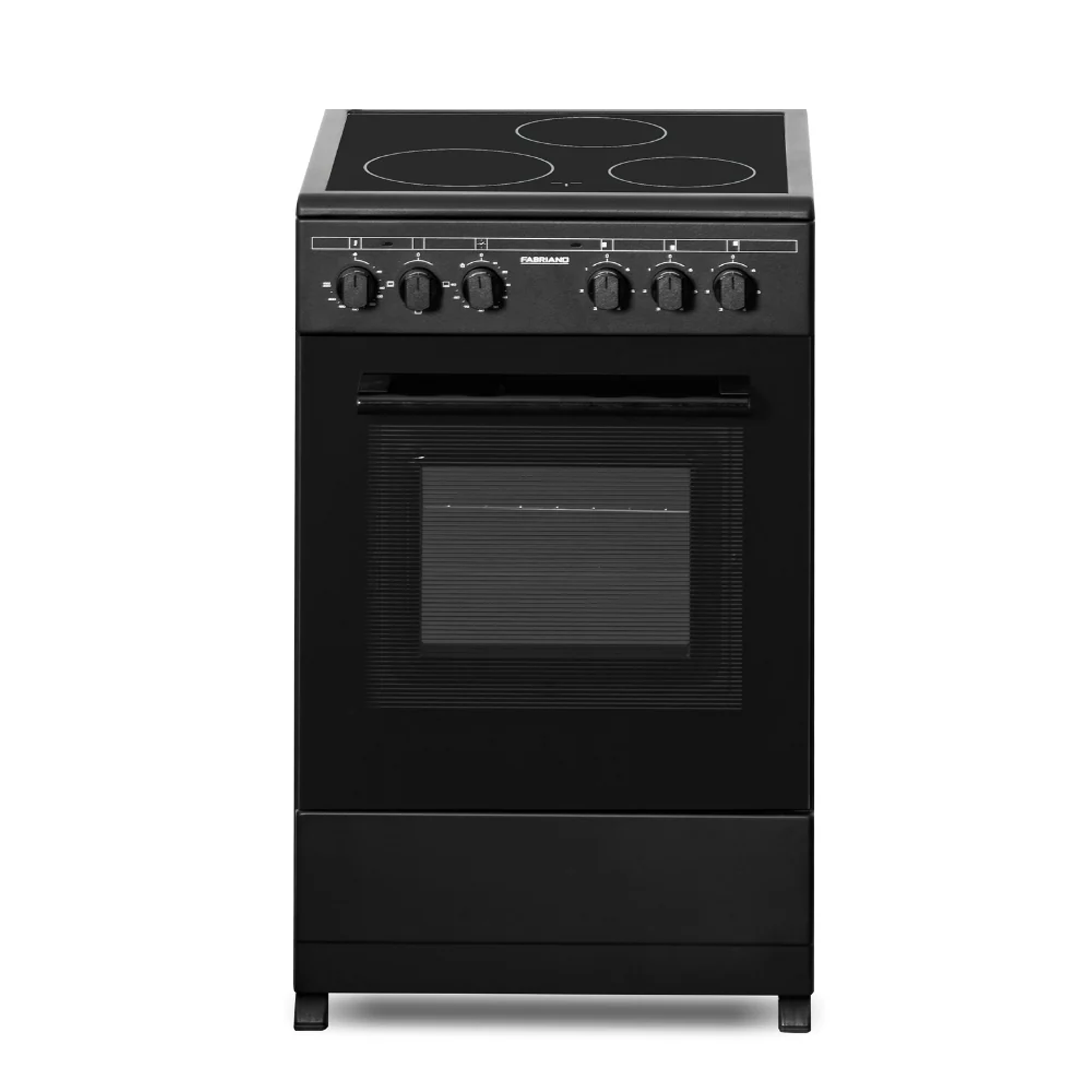 Cooktop: Features a 3-burner vitro-ceramic electric hob, eliminating the need for LPG. Oven: Includes a 36-liter capacity electric oven with three functions and a drop-down double-glass door for safety and heat retention. Design & Installation: Designed in the "Style" series aesthetics, it is a freestanding unit with a width of 50cm, depth of 55cm, and height of 85cm, suitable for compact kitchen spaces. Controls: Operated by front-mounted control knobs and features a mechanical timer. Safety & Convenience: The oven cavity includes a safety device, interior light, and double-insulated glass door.