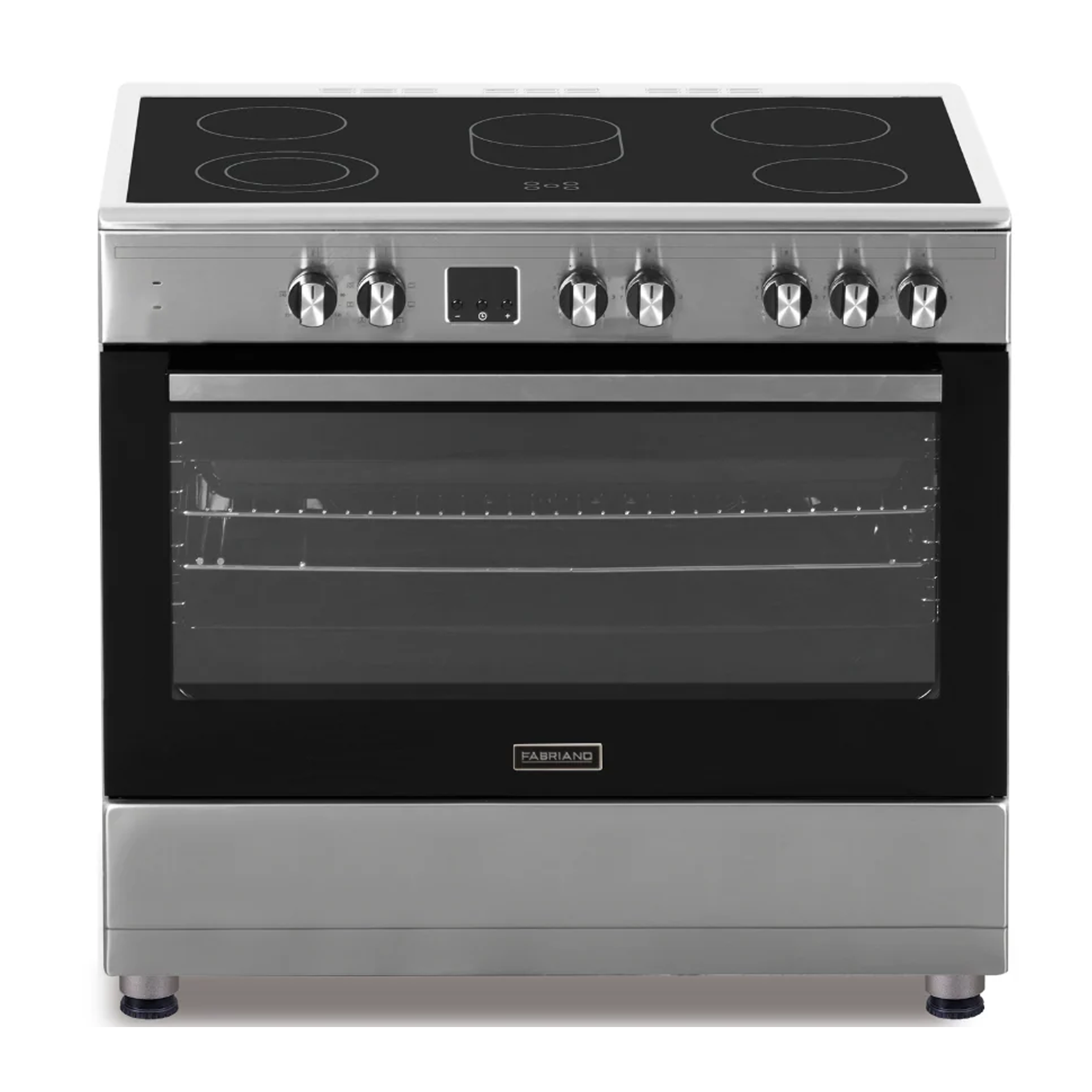 Full electric operation — no gas needed, perfect for homes without LPG connections or where gas is restricted. Large 98 L convection oven — roomy and well‑equipped for baking, roasting, and multi‑level cooking. Five cooking zones — more flexibility on top than typical 4‑zone electric cooktops. Digital timer + multi‑function oven controls — more precise control than basic models. Rotisserie and catalytic cleaning — features that are usually found in more premium ranges.