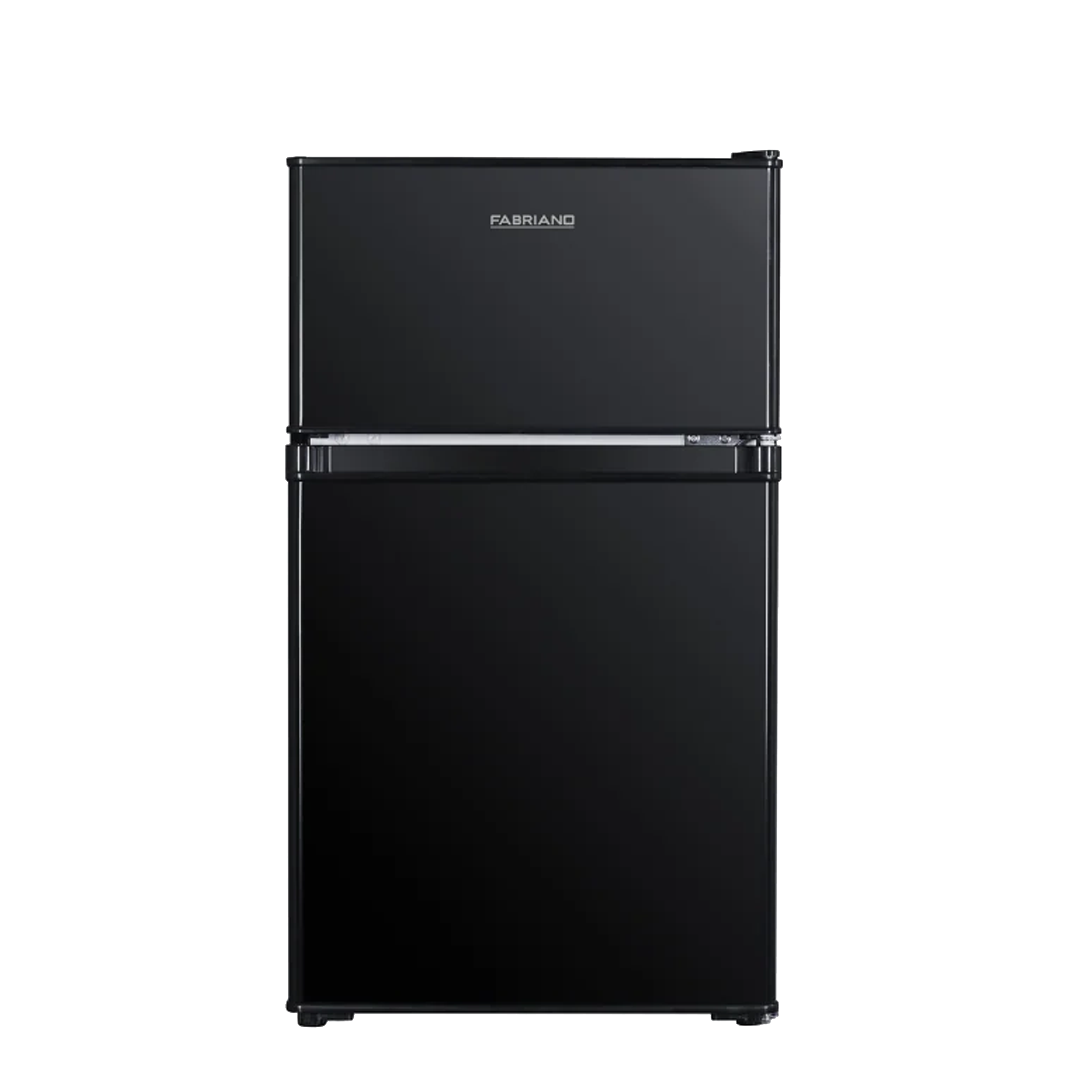The Fabriano FDCH03BL is a 3 cu. ft (cubic feet) two-door direct cool refrigerator, often sold as a personal or bar fridge.
