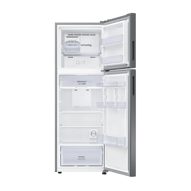 Easy access. This refrigerator features two doors, allowing for easy access to both the refrigerator and freezer compartments. The refrigerator section is conveniently positioned at eye level, making it effortless to retrieve frequently used items without the need to bend down. The freezer compartment is located below, providing a spacious area for all your frozen foods. No Frost feature. This eliminates the need for manual defrosting. It uses advanced technology to prevent the build-up of ice and frost inside the refrigerator, maintaining a consistent temperature throughout the appliance. This not only saves you time and effort but also ensures that your food stays fresh and retains its optimal quality. Equipped with Digital Inverter technology. The Samsung RT35CG5444S9TC operates efficiently and quietly through Digital Inverter Technology. It adjusts the compressor speed according to the cooling demands, resulting in energy savings and reduced noise levels. This allows for a peaceful and energy-efficient refrigerator experience. All Around Cooling system. This feature ensures even distribution of cold air throughout the refrigerator, providing uniform cooling in every corner. With strategically placed vents, it circulates cold air to maintain a consistent temperature, keeping your food fresh for more extended periods. Optimal Fresh Zone. This is a specialized compartment designed to preserve the freshness of fruits and vegetables. Precise temperature and humidity control provide an ideal environment to keep your produce crisp and flavorful for extended periods, ensuring they stay fresh and delicious. Active Fresh Filter. This helps eliminate unwanted odors from the refrigerator. It effectively removes any unpleasant smells, ensuring that your food items remain fresh and odor-free. This feature contributes to maintaining a clean and hygienic environment for your stored items