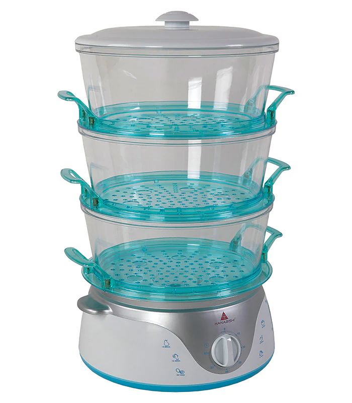 3 Level Food Steamer with FREE plastic container 900 Wattage