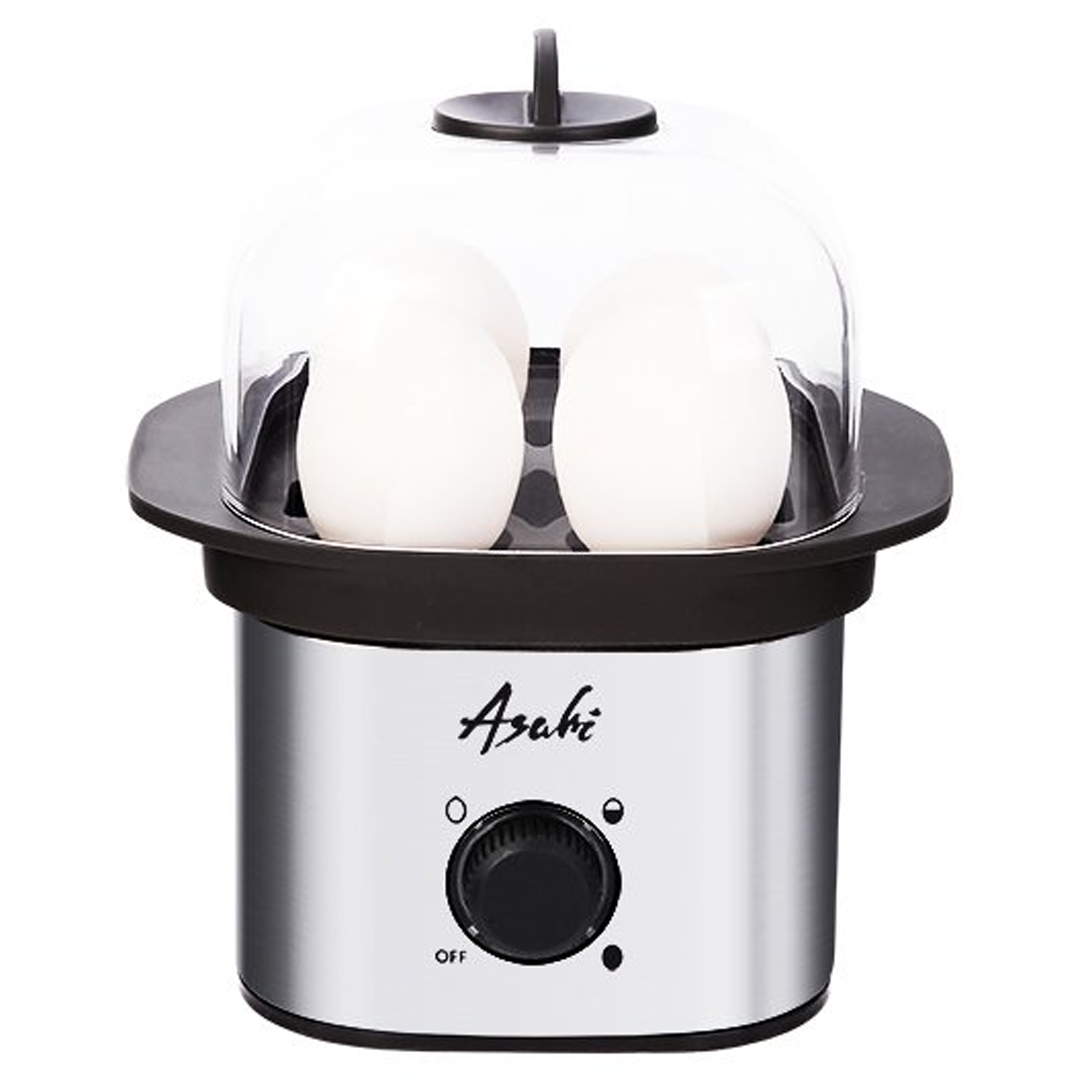 Egg Boiler 4-egg capacity 300W 3 boiling settings On-off indicator lamp Equipped with Thermal Cut-Off Fuse (TCO) Double insulated AC cord Accessories: Measuring cup with egg piercer