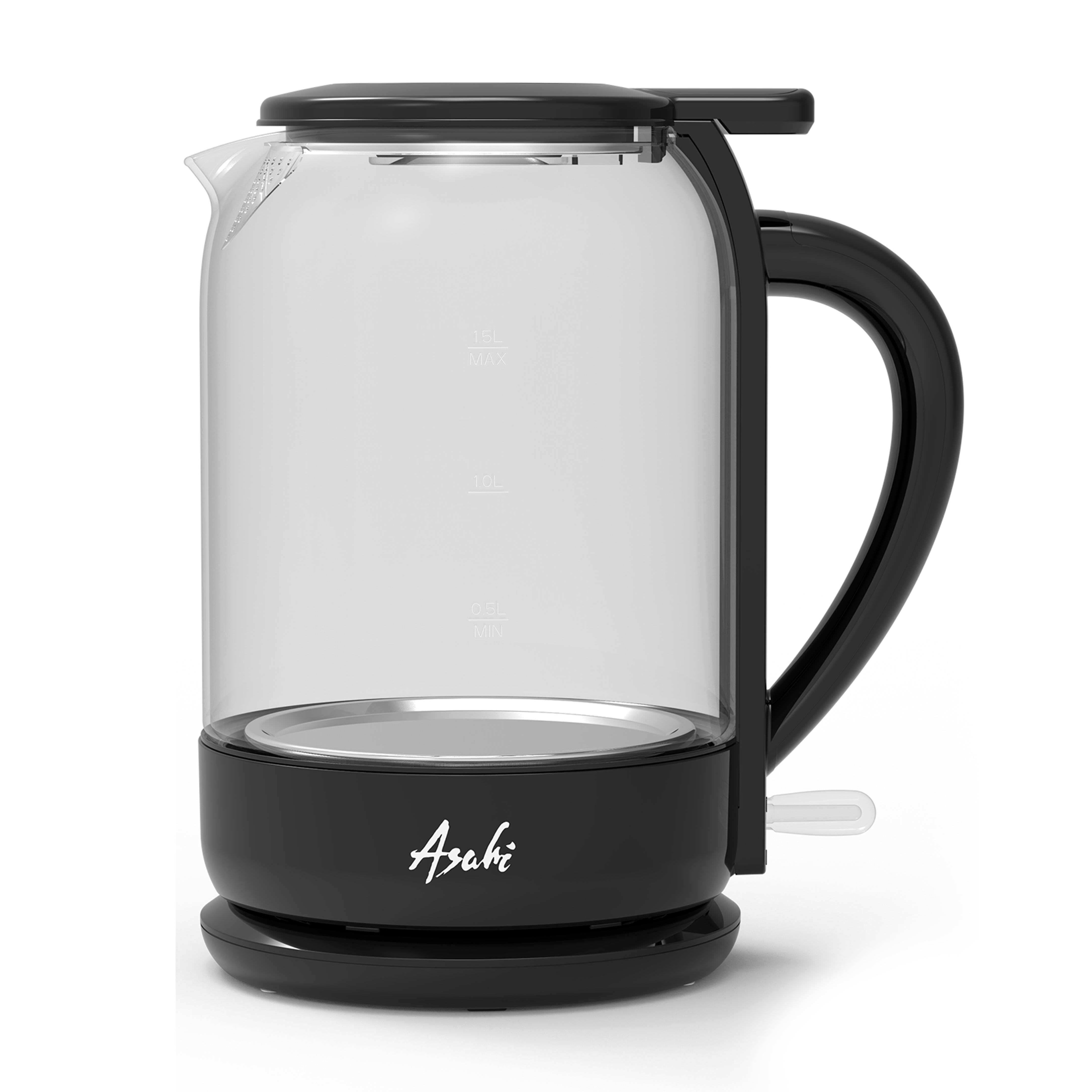 Asahi EK-153 Glass Electric Kettle: The main unit, made of durable, high-temperature glass. Cordless 360° Base: Stainless Steel Water Filter/Strainer: User Manual & Warranty Card: