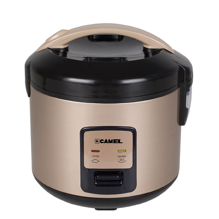 The main rice cooker unit with a colored stainless steel body and a side-hinged cover. A removable non-stick inner pot. A plastic steamer tray or basket. A measuring cup (often a specific size for rice cookers) A serving spatula or spoon An instruction manual