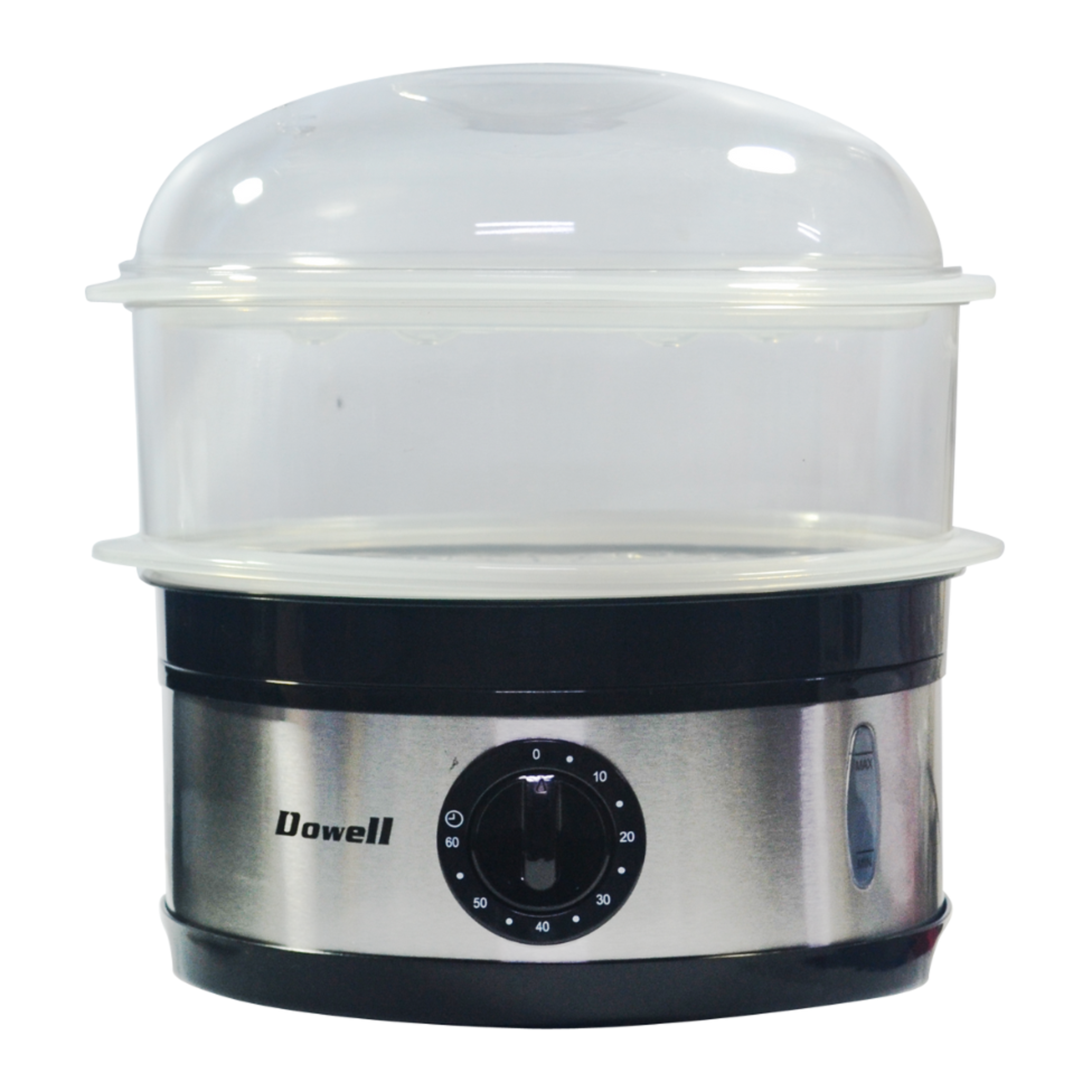 The 3-tier food steamer features transparent steamer baskets that let you easily monitor the cooking process, along with a detachable plastic base for convenient cleaning and storage. It includes an off-timer setting of up to 60 minutes with a bell sound indicator when the timer ends, and a water level indicator to help ensure safe and efficient steaming.