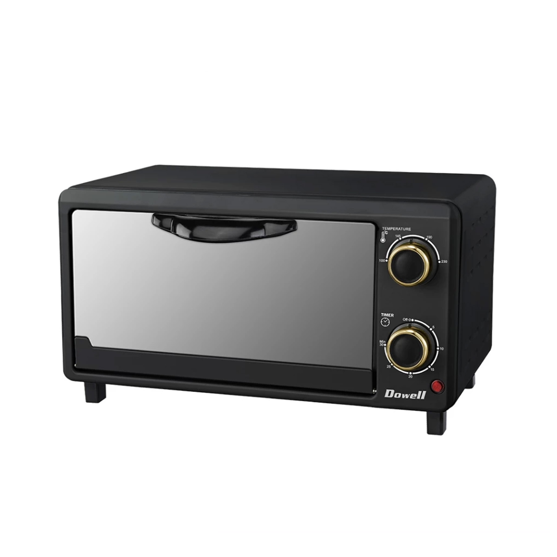 The ELO-012 has a adjustable temperature control up to 23 °C and a 30-minute timer, allowing for precise and convenient cooking. It offers three racking levels for versatile use and includes a power light indicator along with a bell alert for clear operational feedback. Safety is ensured through thermal fuse protection, while the energy-efficient glass door handle and heat-resistant glass make handling safe and cleaning easy. The oven’s matte body finish adds durability and style, and its 1000-watt power provides efficient and reliable performance.