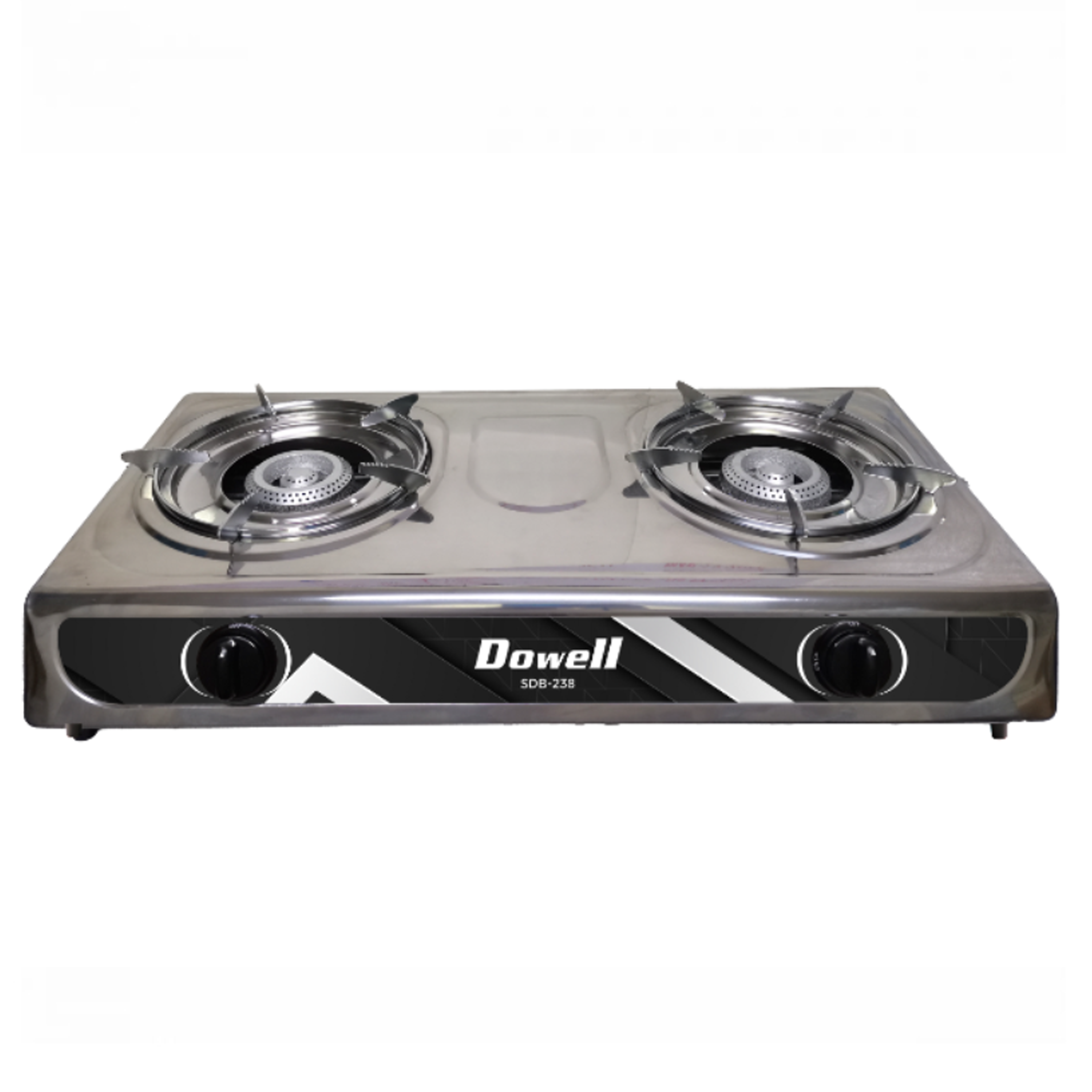 Double Burner Design. Equipped with two burners, the Dowell SDB-238 allows you to cook multiple dishes simultaneously, enhancing your meal preparation efficiency. This feature is perfect for busy kitchens where time is of the essence. Stainless Steel Body. Crafted from high-quality stainless steel, this stove not only ensures durability but also provides a sleek, modern aesthetic that complements any kitchen decor. Its robust construction is resistant to rust and corrosion, ensuring longevity. Tray and Cookware Rest. Designed with practicality in mind, the tray and cookware rest offer a secure surface for your pots and pans, ensuring stability while cooking. This feature promotes safety and prevents accidents in the kitchen. Automatic Ignition. The automatic ignition feature allows for quick and hassle-free lighting of the burners, eliminating the need for matches or lighters. Simply turn the knob, and you're ready to start cooking.