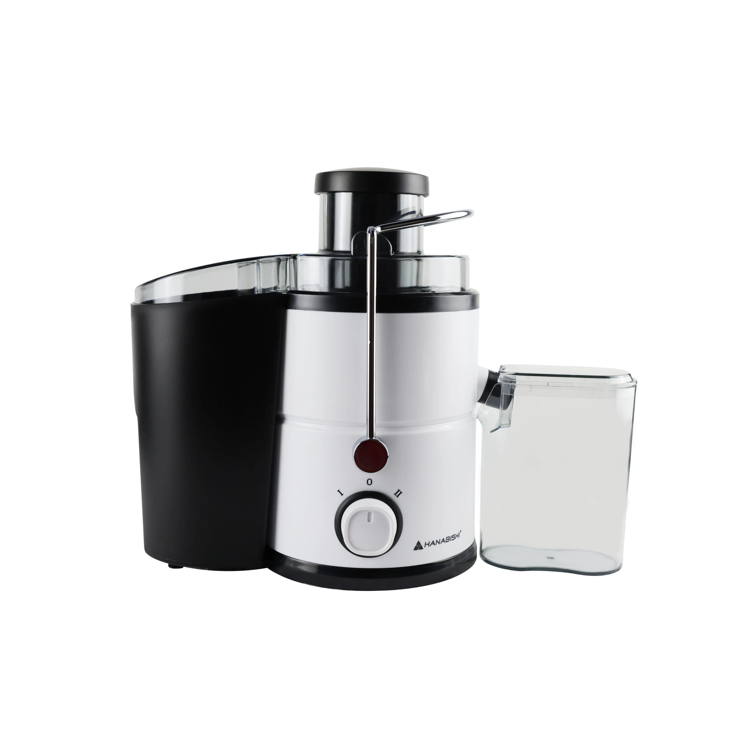 1.5 liter pulp containter & 500ml juicer cup Large feeding tube with pusher cover 2 speeds Stainless steel filter Nozzle with anti-drip function Easy assembly and cleaning Thermal fuse protected Wattage: 400w Dimensions: 270x180x290mm