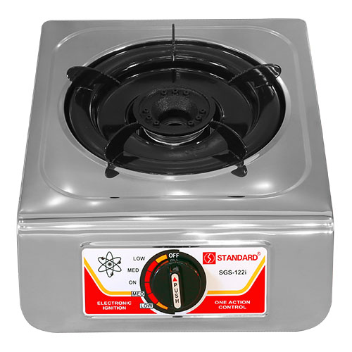 Automatic ignition Stainless top and front Removable trivet with drip pan Single detachable top burner