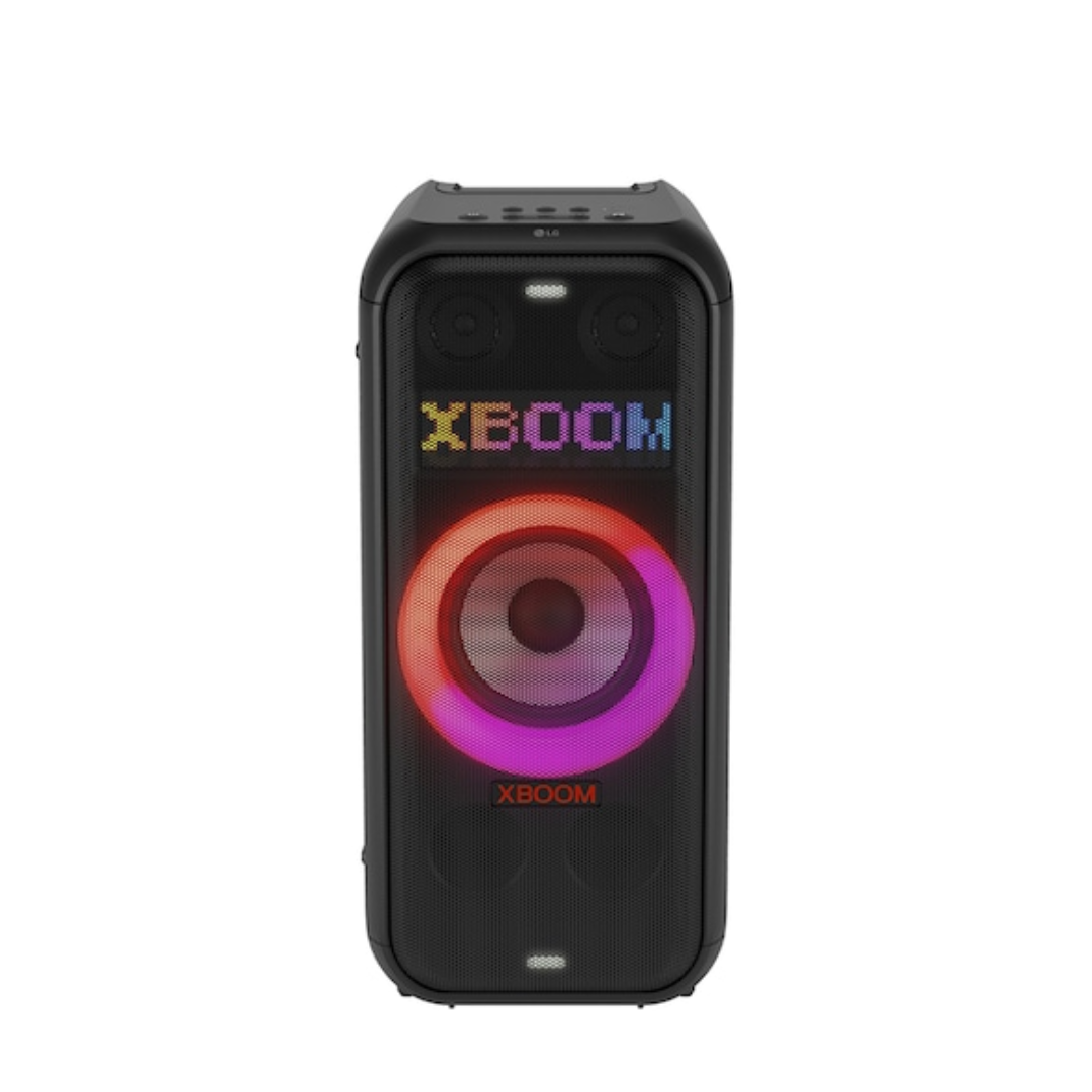 Dynamic Pixel Lighting: A built-in LED panel that can display custom text messages, animations, or graphic equalizer patterns via the LG XBOOM App. Multi Color Ring Lighting & X-Flash Lighting: Beat-driven LED lights around the woofer and strobe lights create a dynamic light show. Dynamic Bass Optimizer: Ensures deep, bold bass sound is balanced and distortion-free, even at low volumes. Karaoke & DJ Effects: Use the XBOOM App for vocal effects, voice changing, and DJ effects like loops and scratching. Portability: Features a telescopic handle and built-in wheels for easy transport.